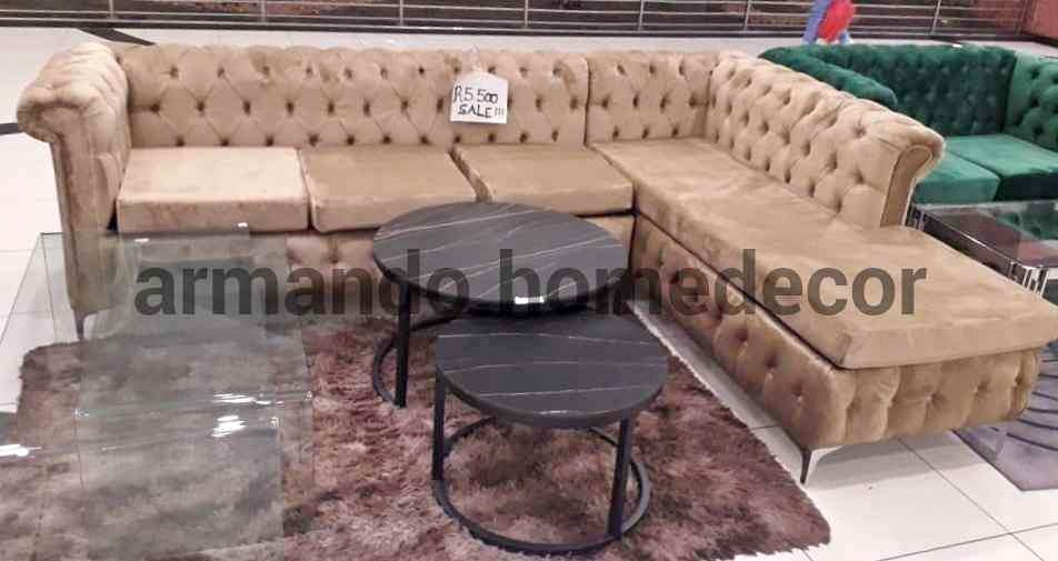 Comes in 2 pieces for easy transport. You can collect in Midrand or we can deliver. Price depends on area. *Coffee table and carpet not included. Other colours can be made on order with a deposit on our Midrand store.