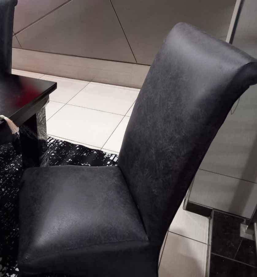 These high back dining chairs have a rounded top. Black painted legs. Please note: Colour may look different on screen. Collection / viewing in Midrand Or we can deliver with cash on delivery. R650 each. Or take 6 chairs and table for R4,950 sale. Please see my other adverts for more furniture. WhatsApp 081 468 4110view more more info.