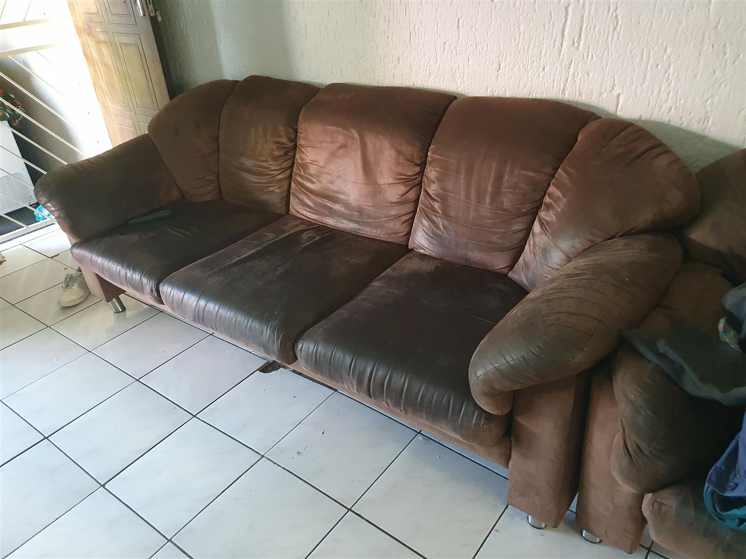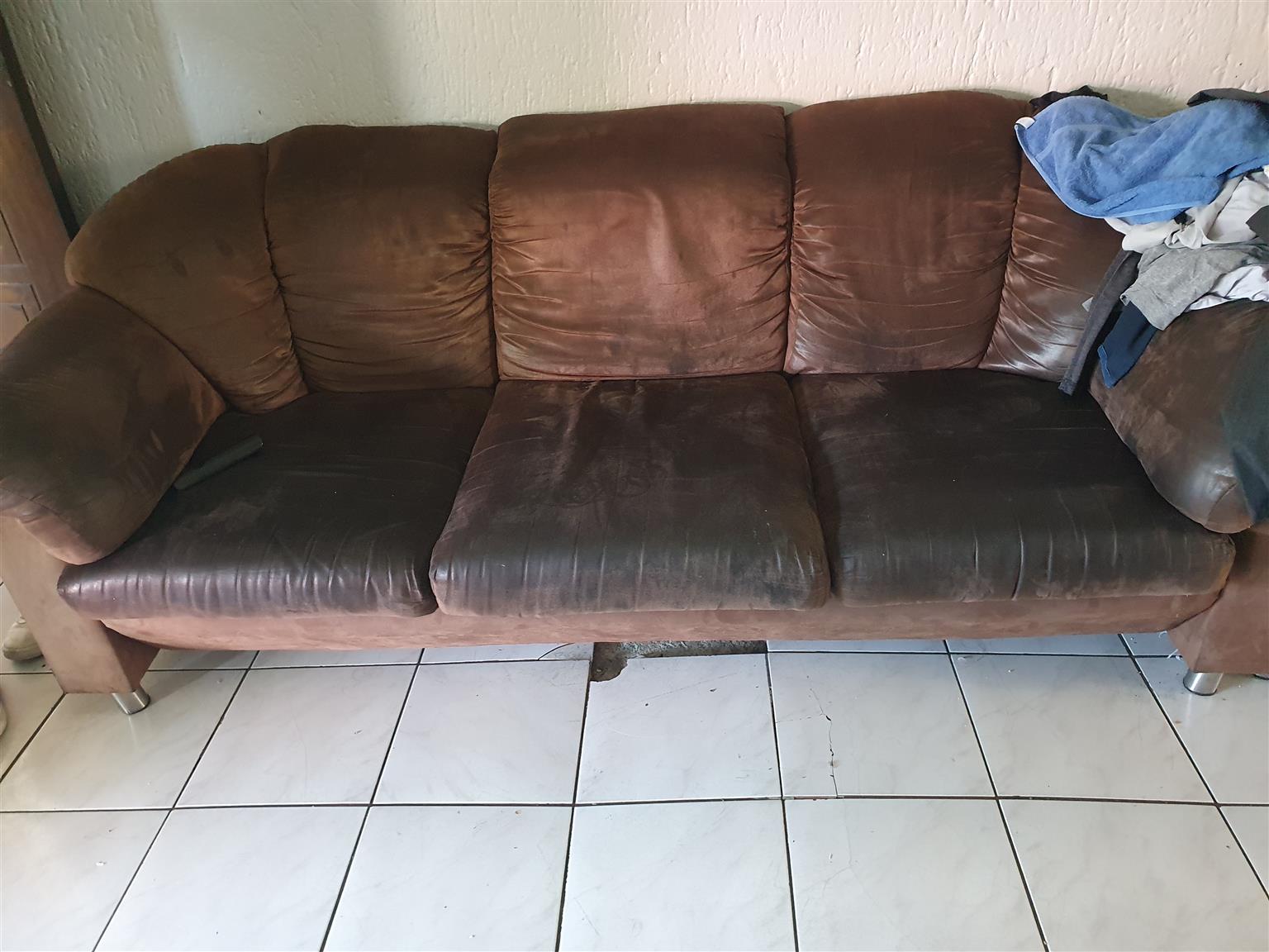 Brown swade sofa, 3vpiece plus 2 piece and 1