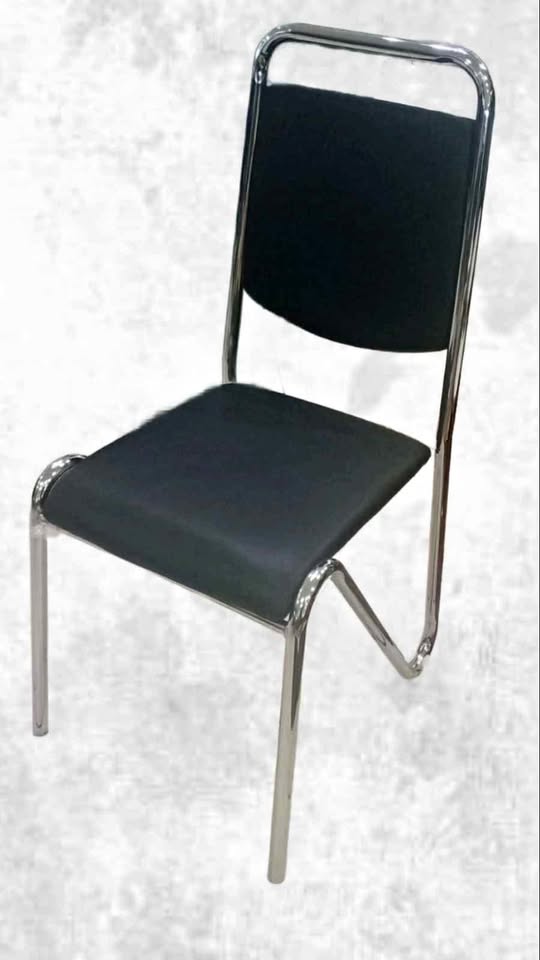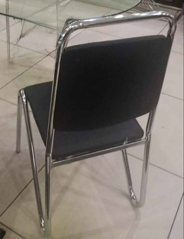 Black and silver chairs Stackable Black faux leather dining chairs with silver frame. R300 each NEW on sale Collection is in Midrand Or delivery available We also keep other chairs and tables. Please see the adverts or ask
