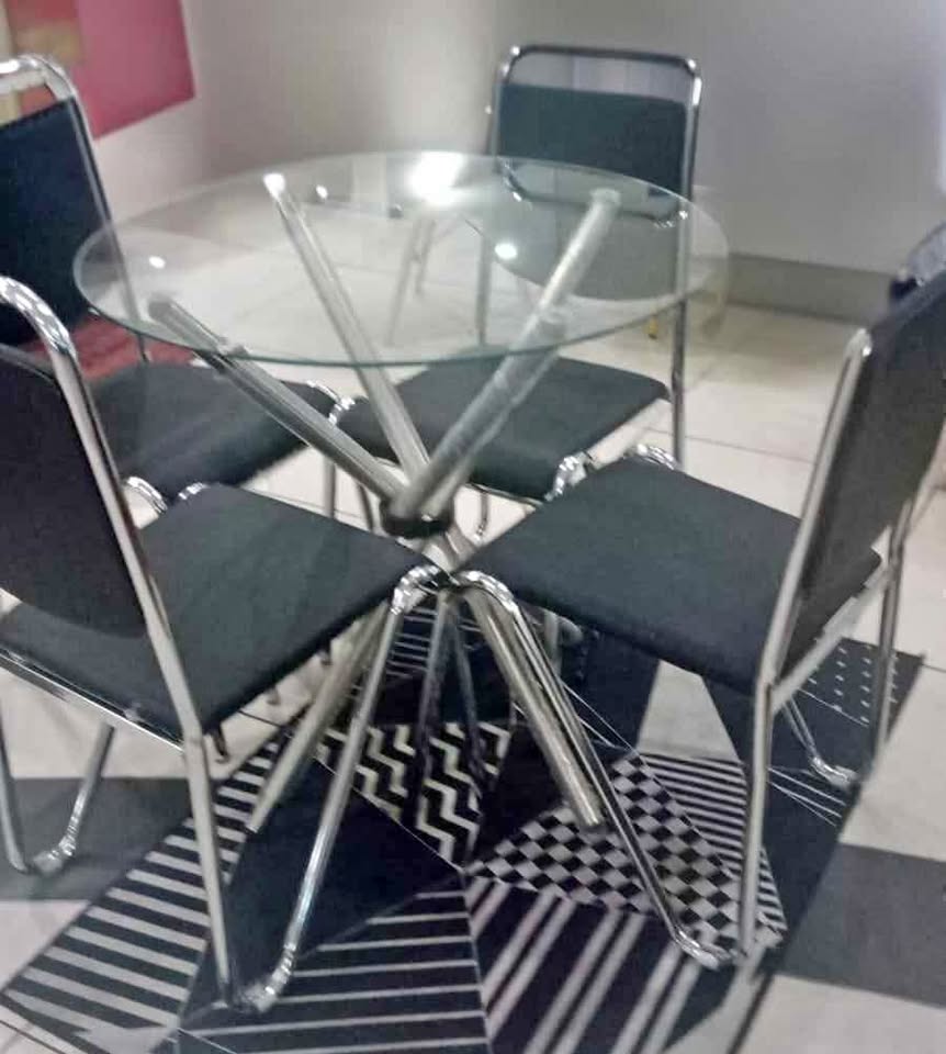 New dining set 4 x black faux leather dining chairs with metal frame 1 x glass table Full set R1700 Collection ilfrom the store in Midrand or delivery available with cash on delivery More sets available. Please WhatsApp to order.