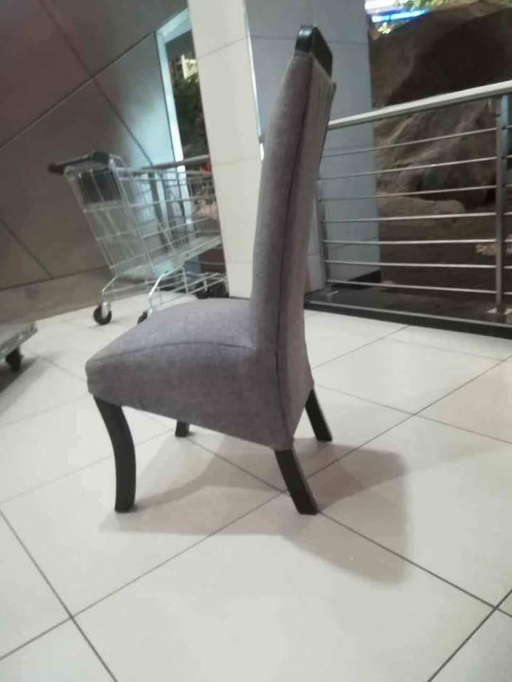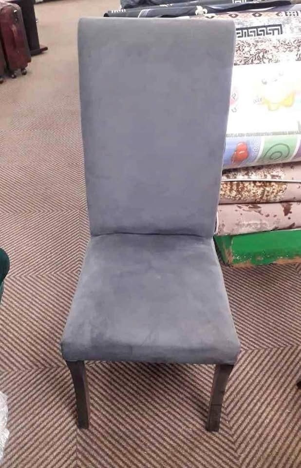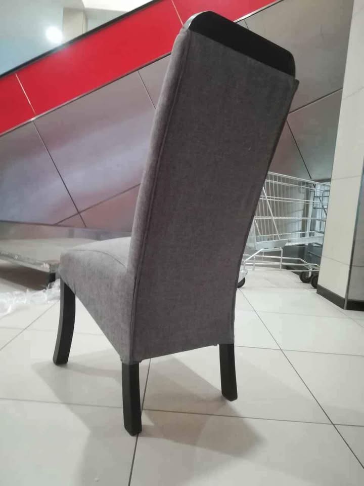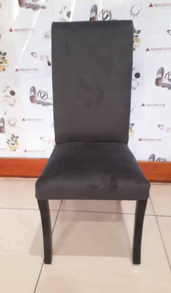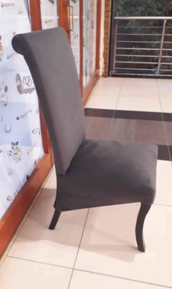 New grey velvet dining chairs High back dining chairs with a rounded top. Covered in a soft dark grey velvet material. Black painted legs. Please note: Colour may look different on screen. Collection / viewing in Midrand Or we can deliver with cash on delivery. R650 each. Or take 6 chairs and table for R4,950 . Please see my other adverts for more furniture. WhatsApp for more info.