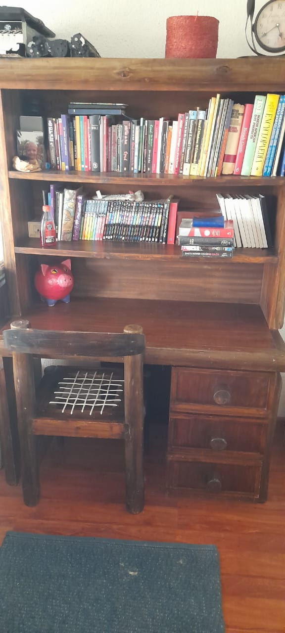 Ranch style single bed, mattress, pedestal, desk with bookcase, toy box and chair