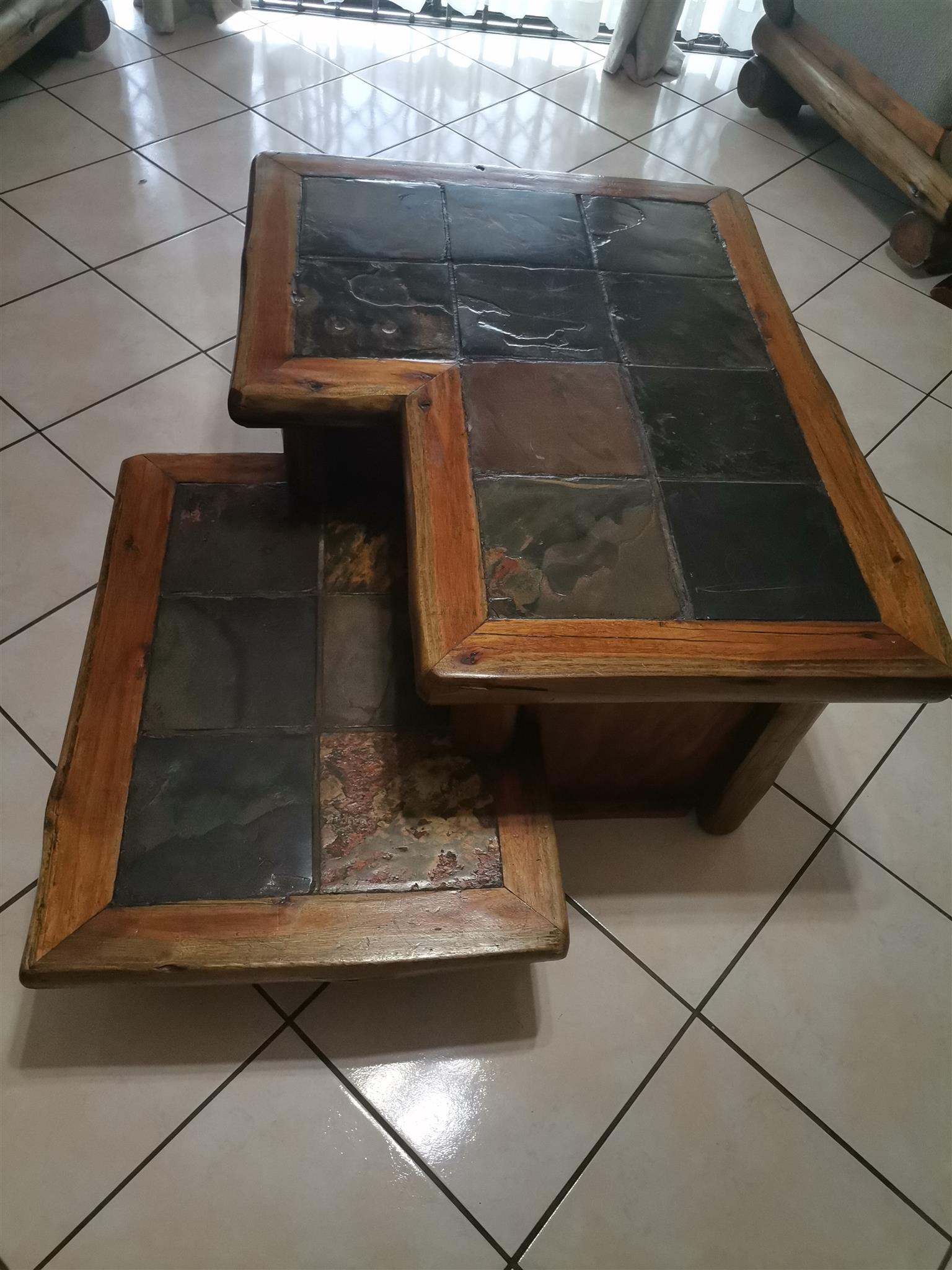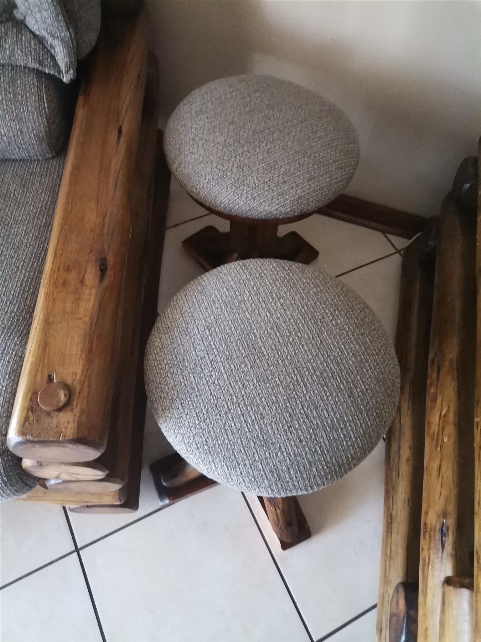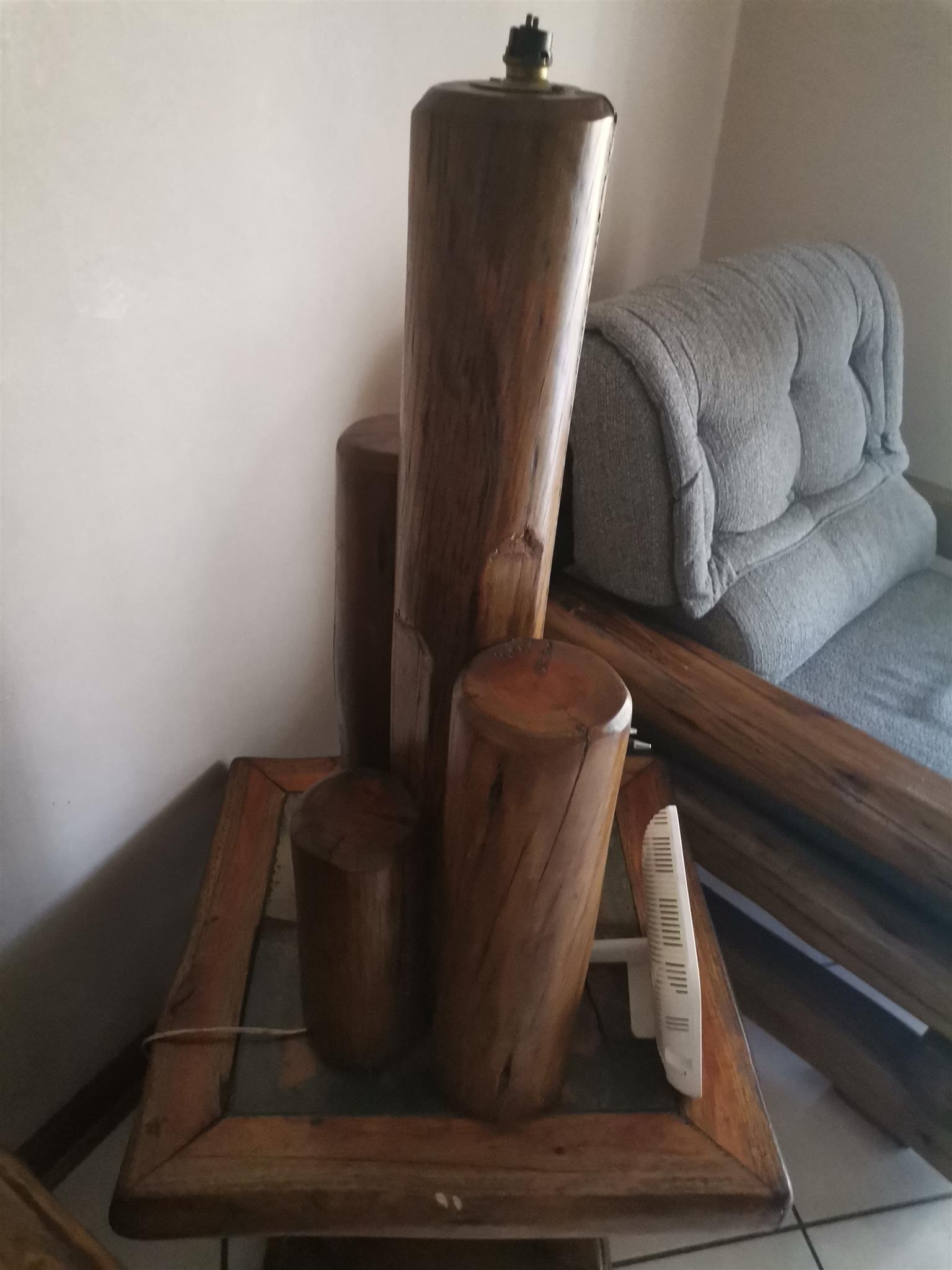 2x2 sitters, 2xl sitter, 2 small round side tables, coffee table, corner table, light stand and a wall unit.