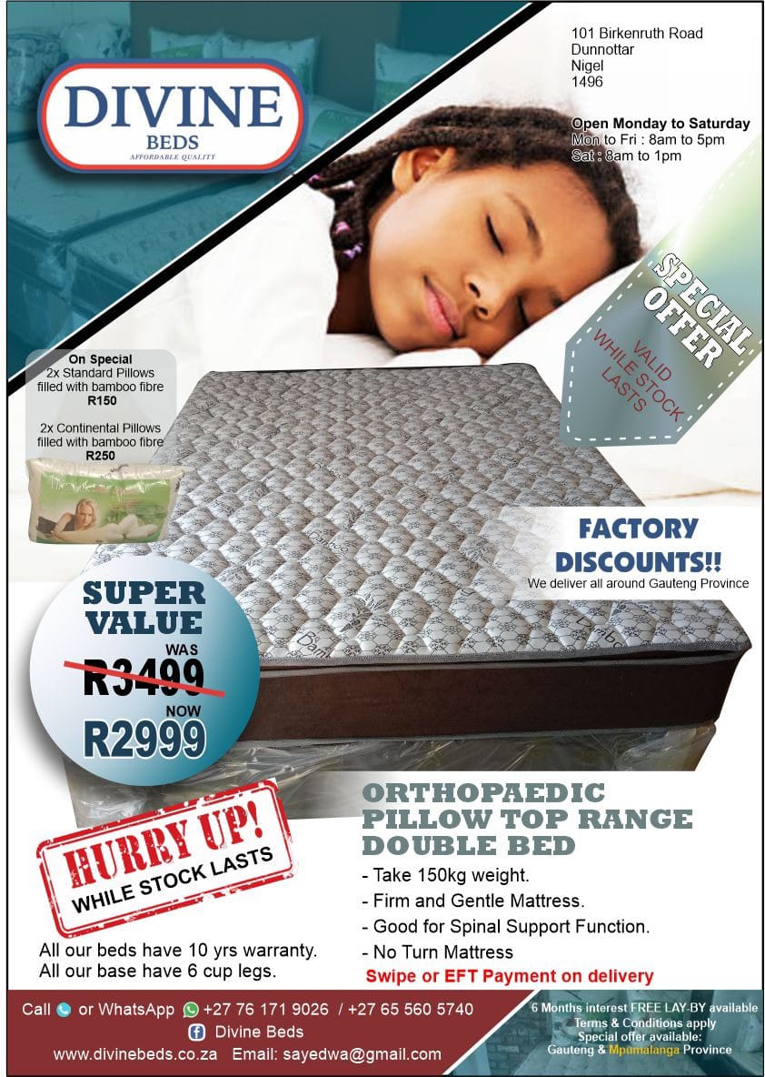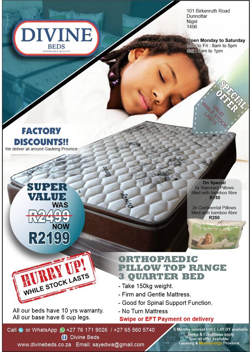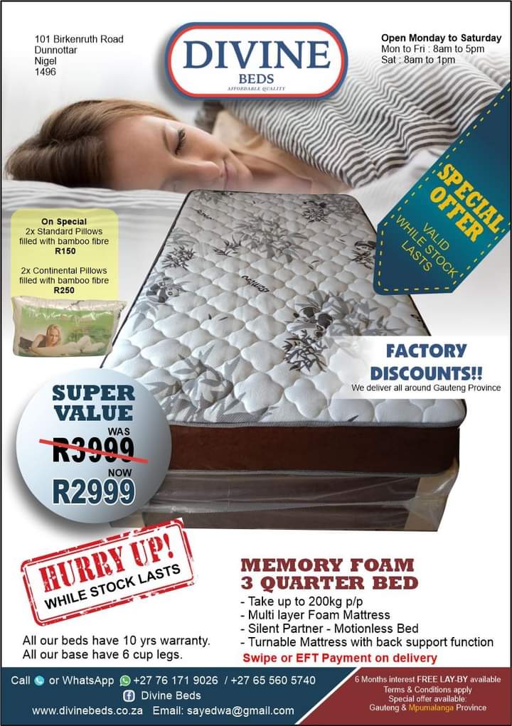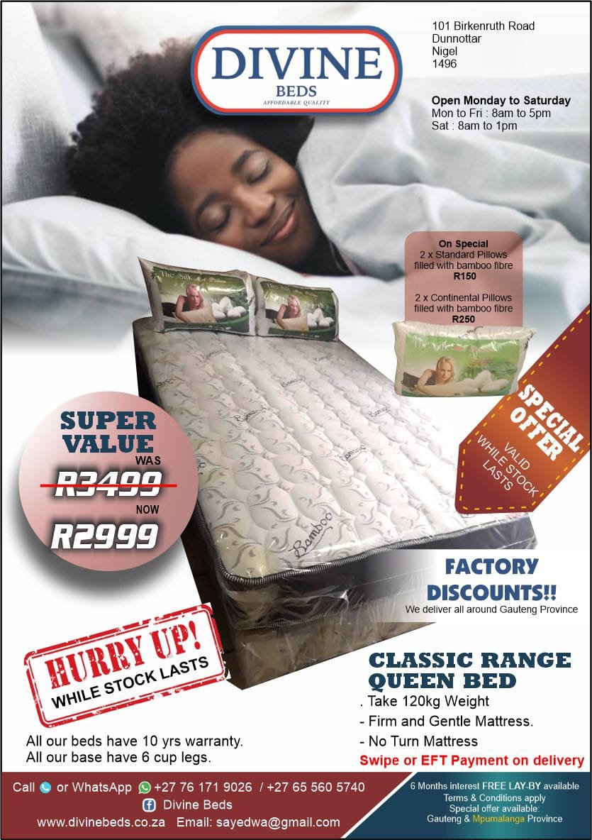 We make and supply Beds, Headboards and Couches at reduced price. We deliver to your home or you collect at factory www.divinebeds.co.za