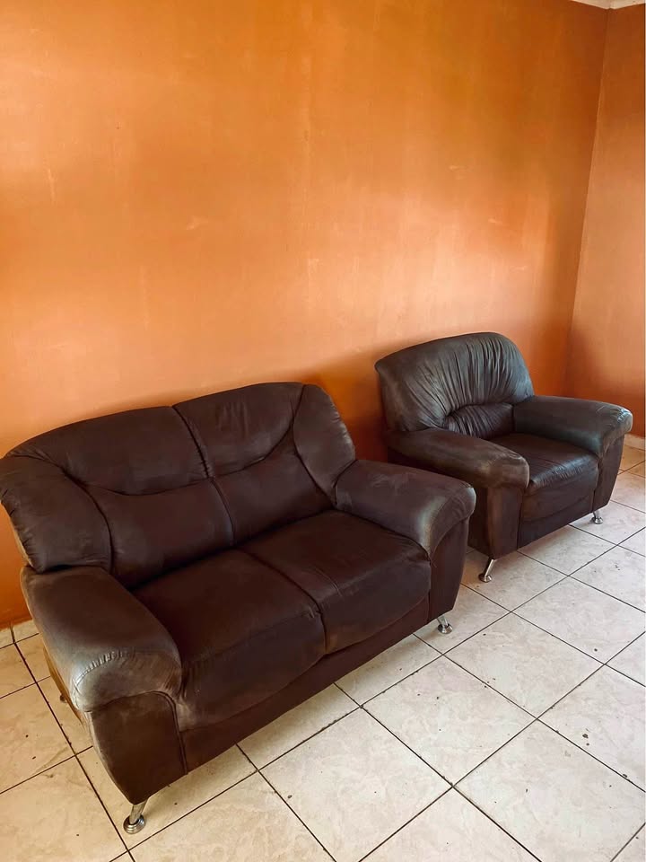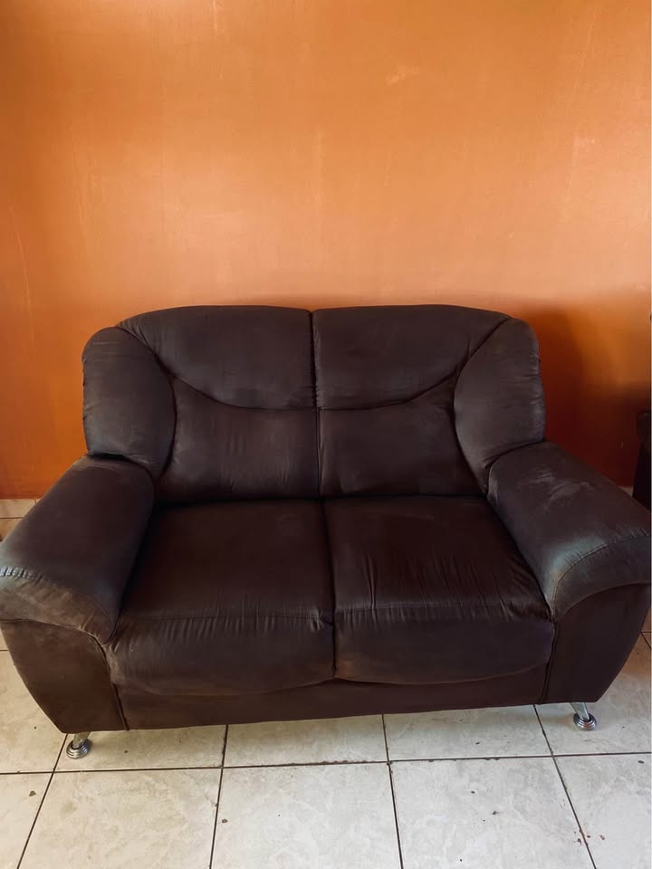 Comfortable brown fabric couch set for sale . Includes one 2-seater and one single -seater . Perfect for lounge , TV room , or starter home 🏠• sturdy metal legs •still very comfy •gently used - no tears or sagging cushions •great value for the set ! 📍pick up : ( protea north soweto 1818 ) 💸 R1500 (negotiable )