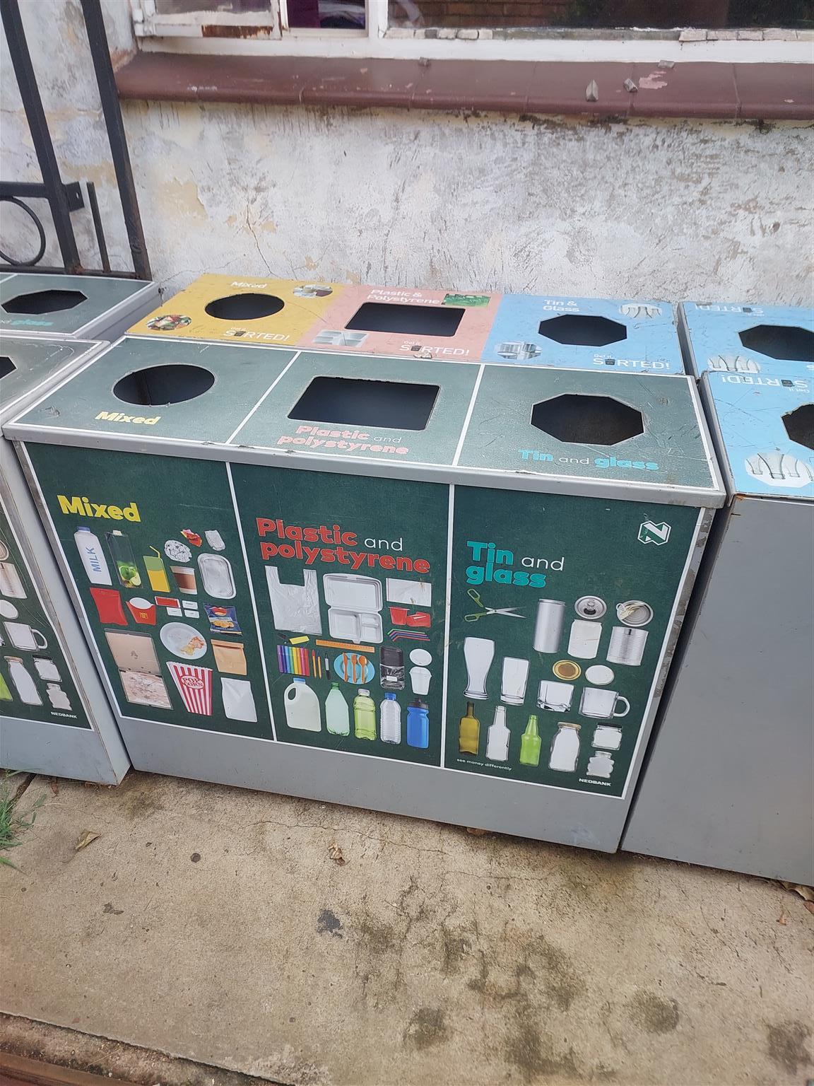 2 sets of benches high back R2500 each, 3x double benches R1500 each,Recycle bins steel R250 each,White board deviders R150 each.