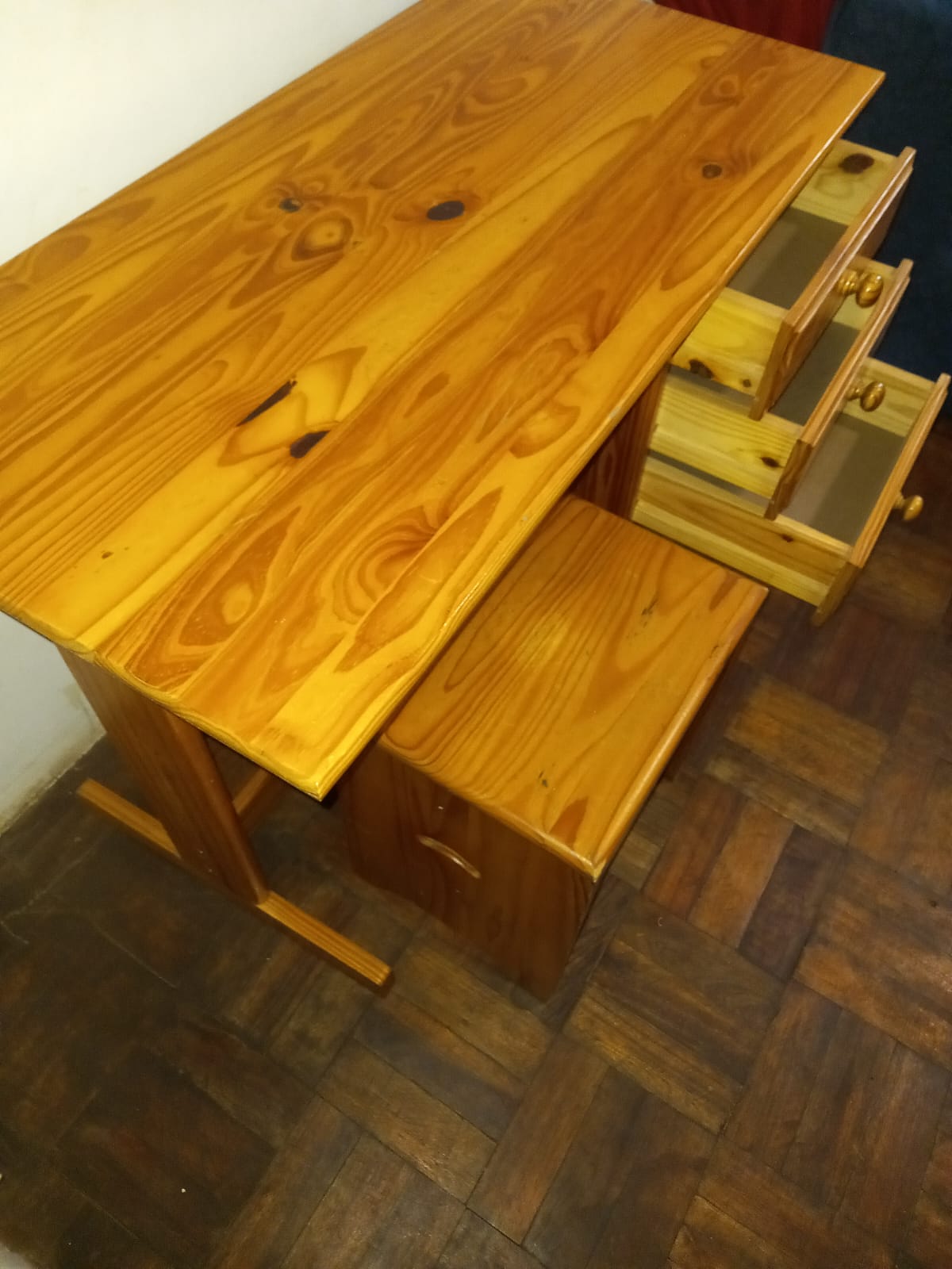 Pine desk and chair with storage underneath lid of chair. 084 569 4295view more