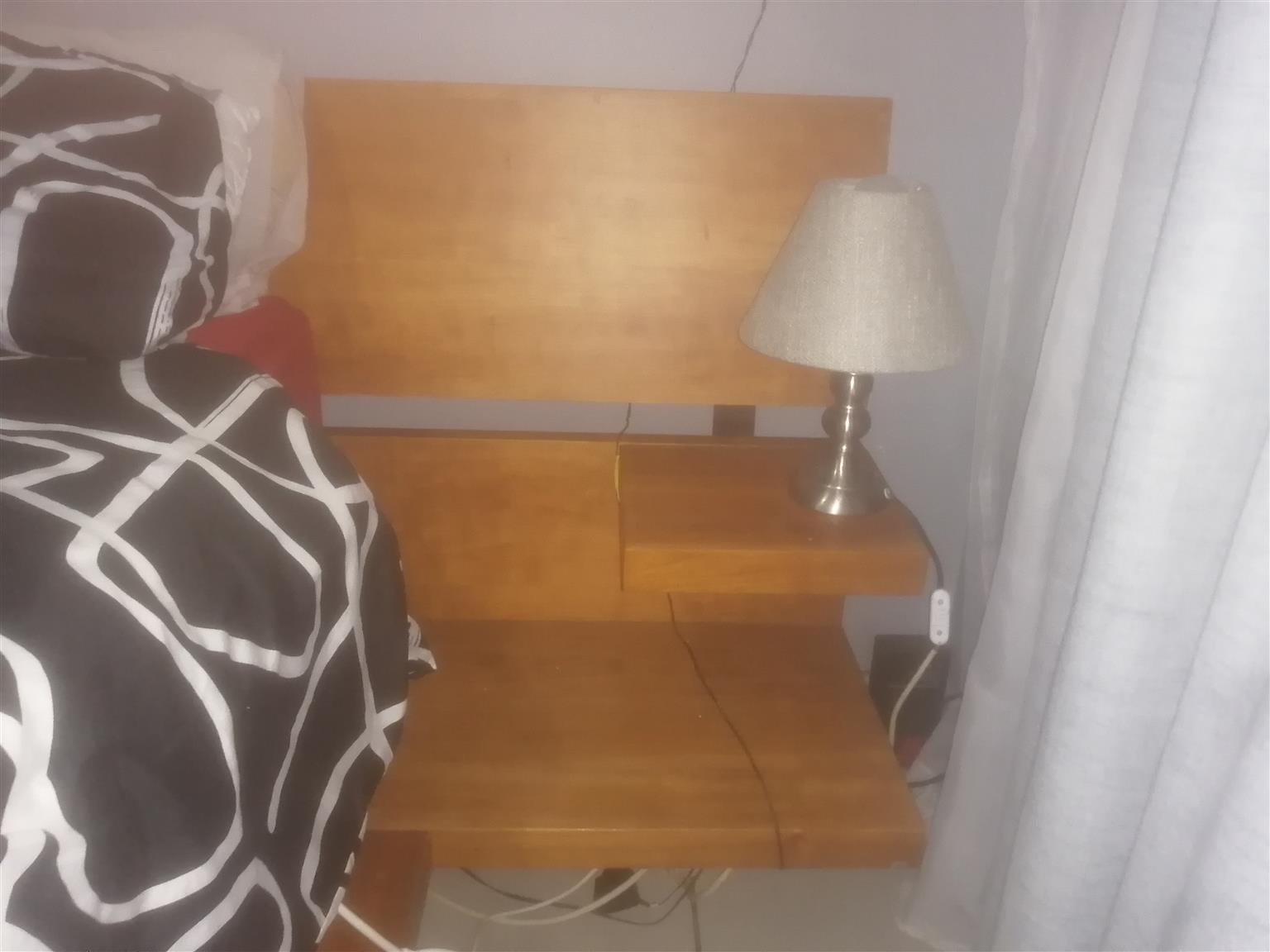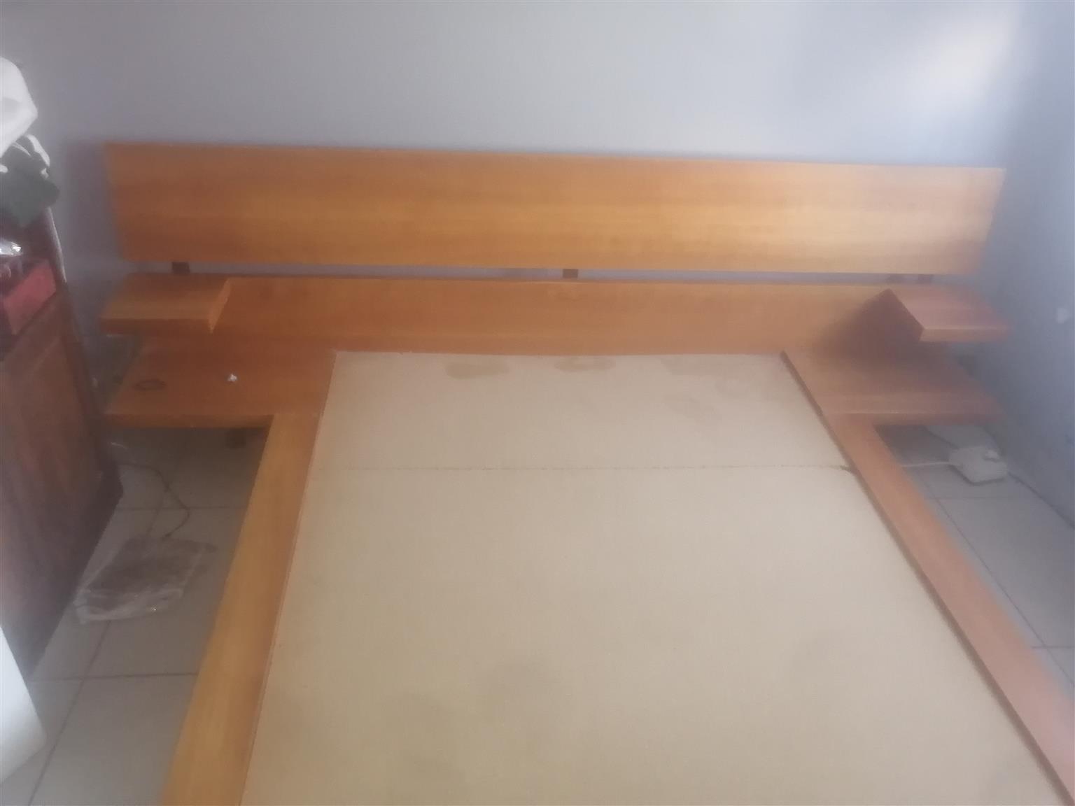 Head board of solid wood 2750x 1m x 60 with a food rest around.