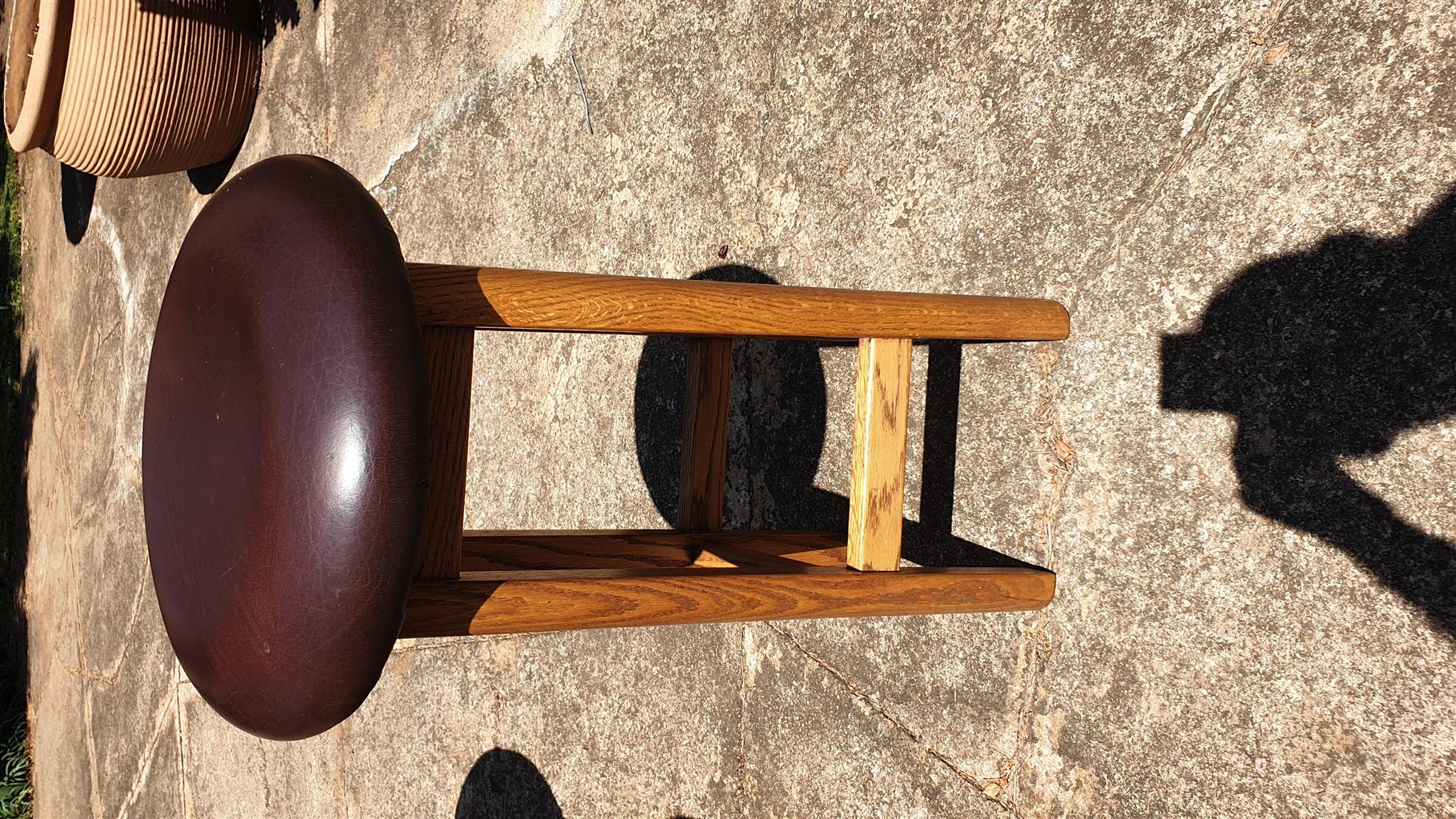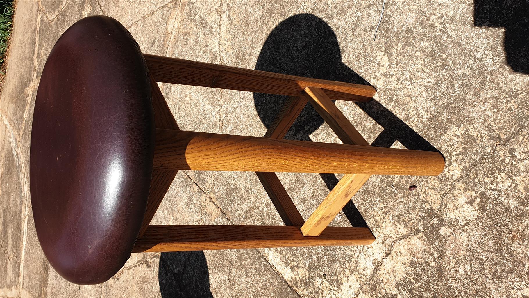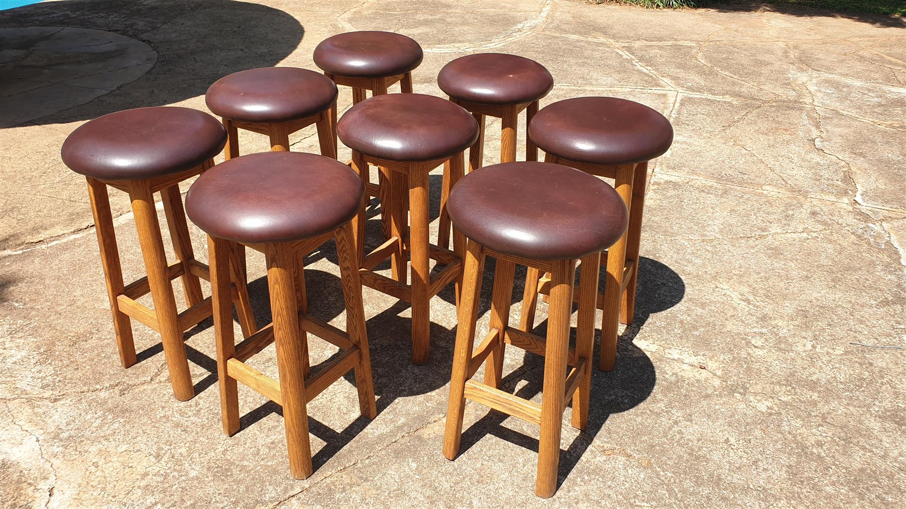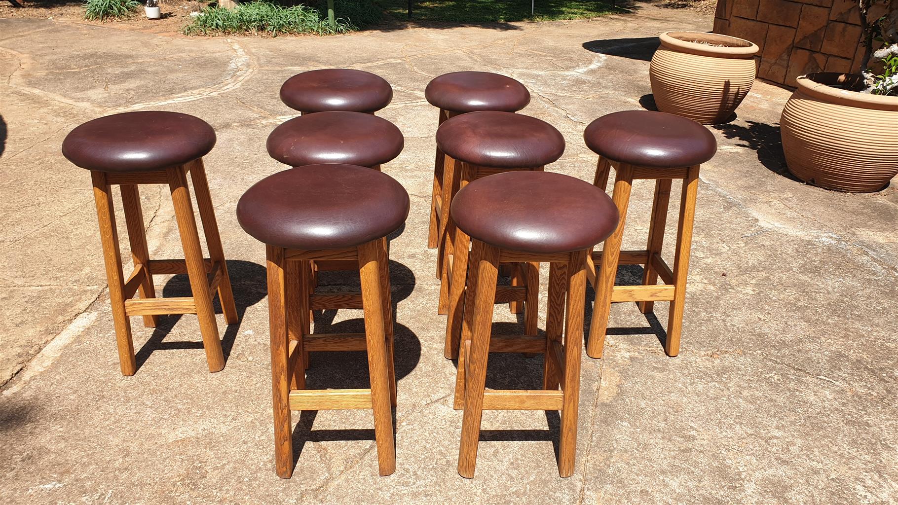 Bar Stools x 8. Brown leather seats with mahogany wood 800mm high in very good condition.