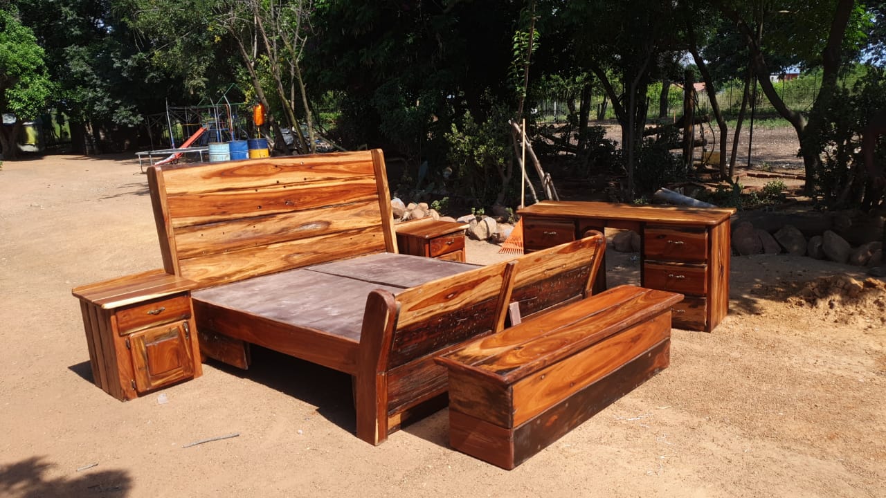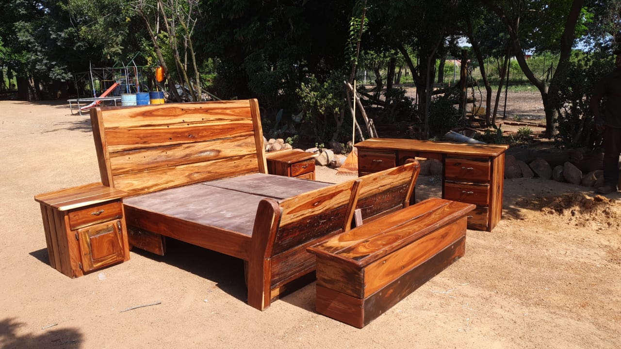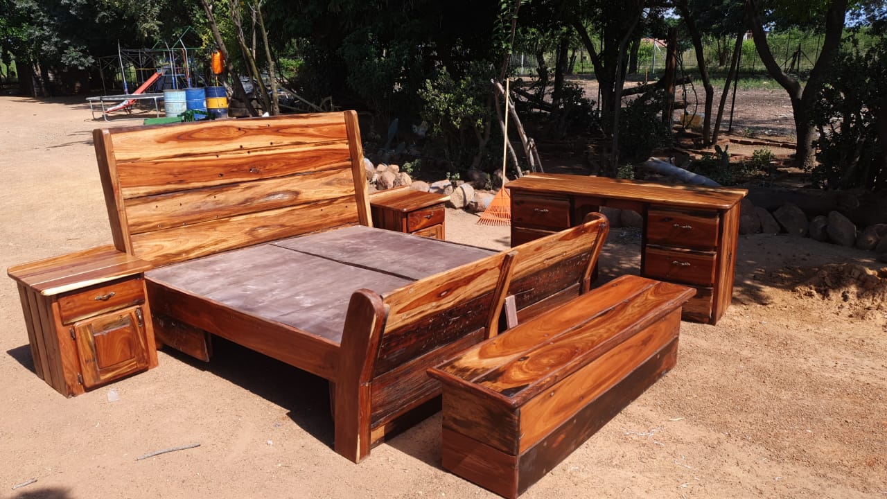 Complete bedroom suite with headboard, small cabinets, kist