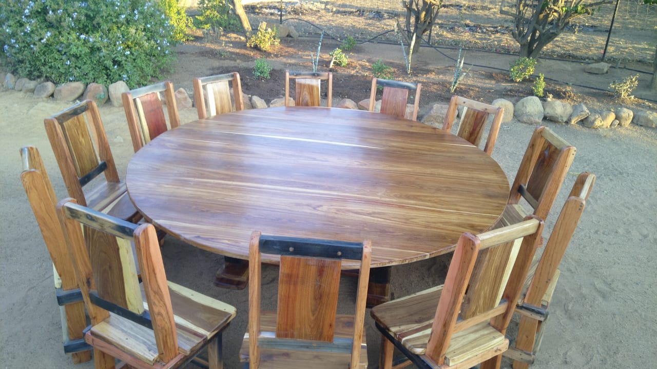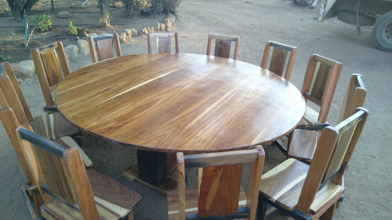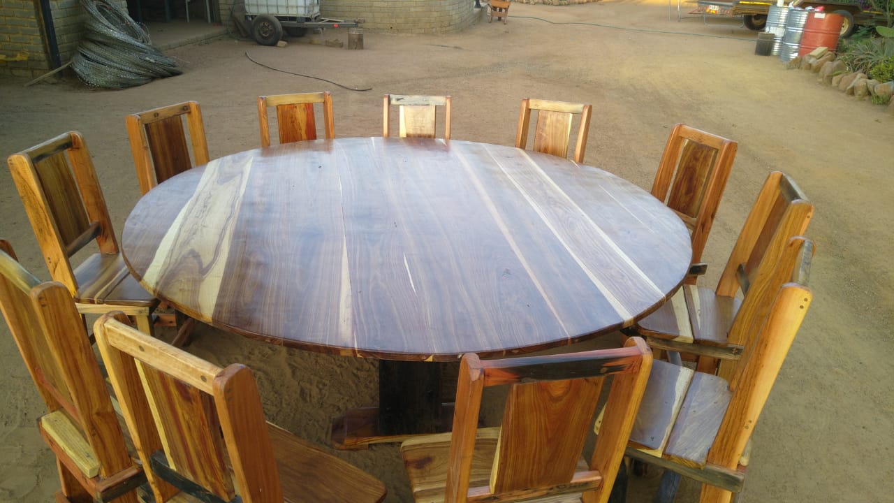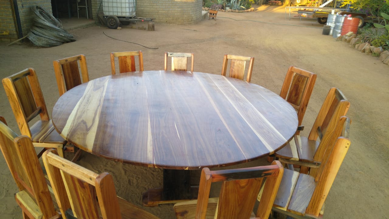 12 sitplek eetkame stel rond - sleeper hout te koop