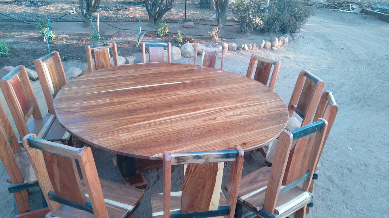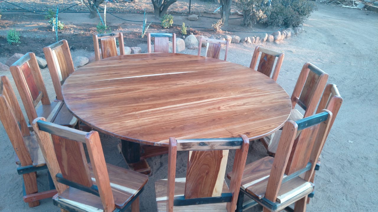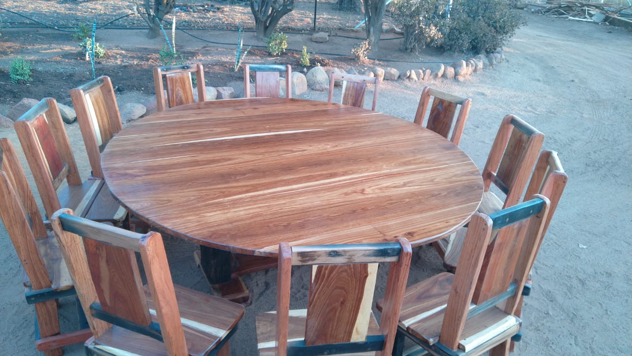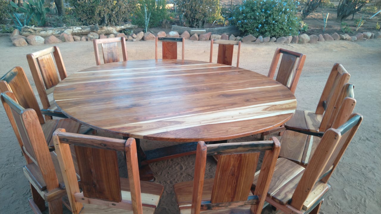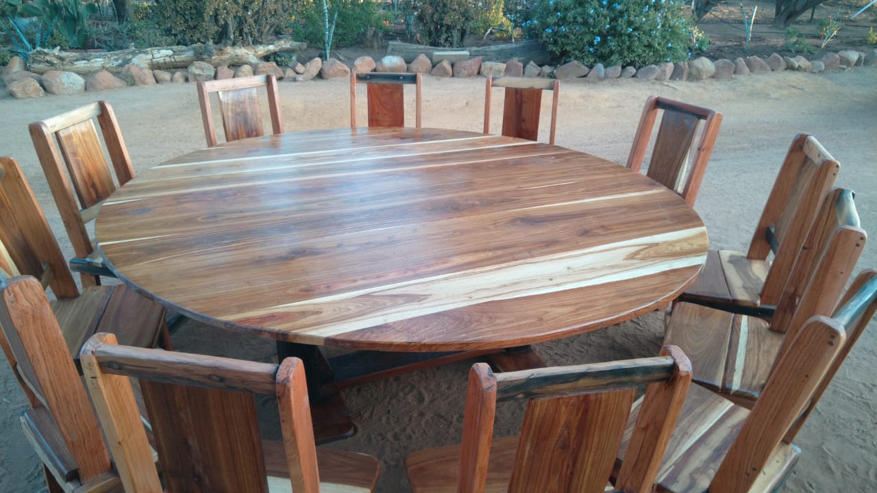 12 sitplek eetkame stel rond - sleeper hout te koop
