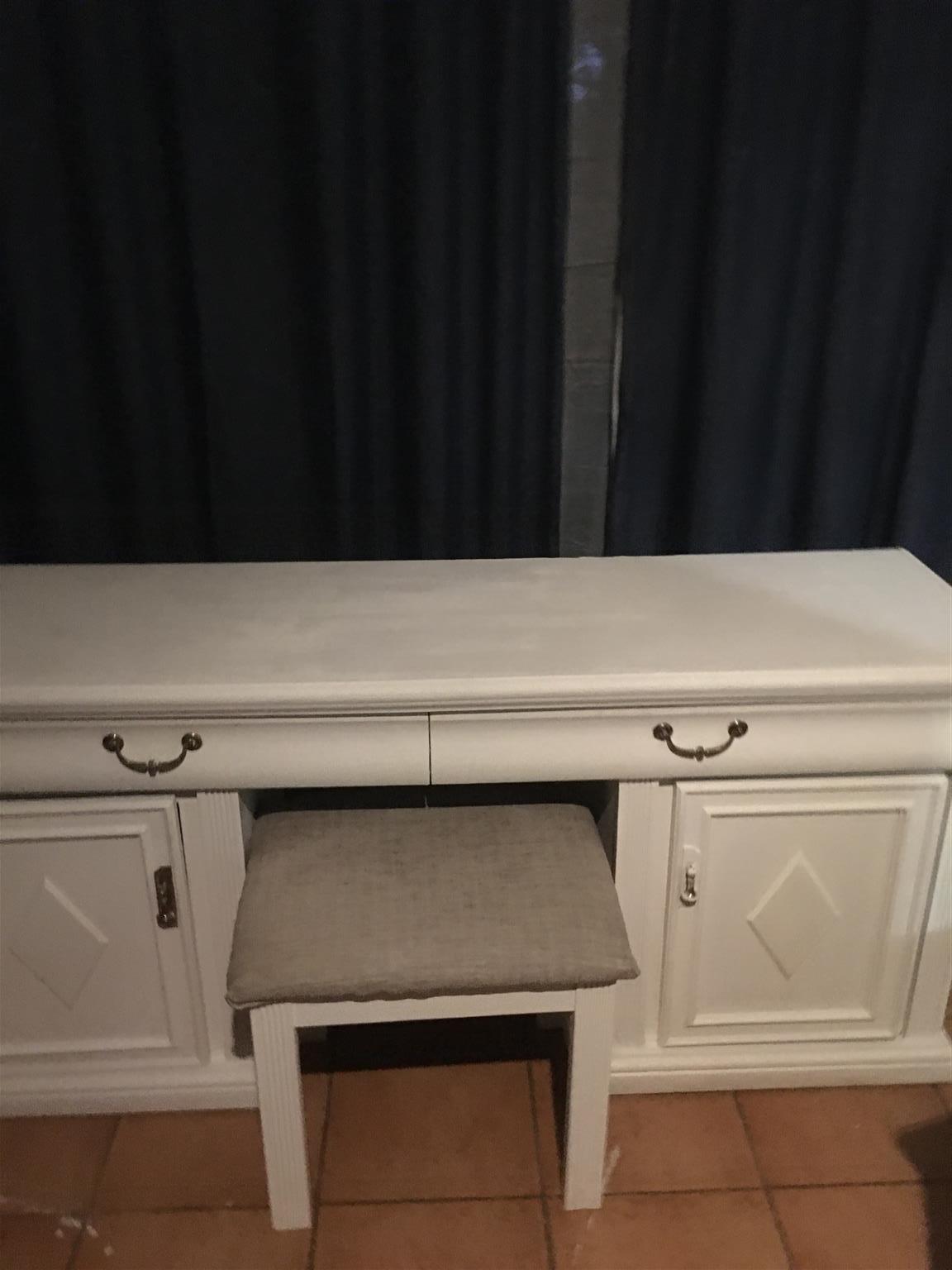 Hi there I’m selling a reconditioned bedroom suite consists of a dressing table quilts large and a stool with draws and cupboards and also two bedside cupboards with draws in excellent condition