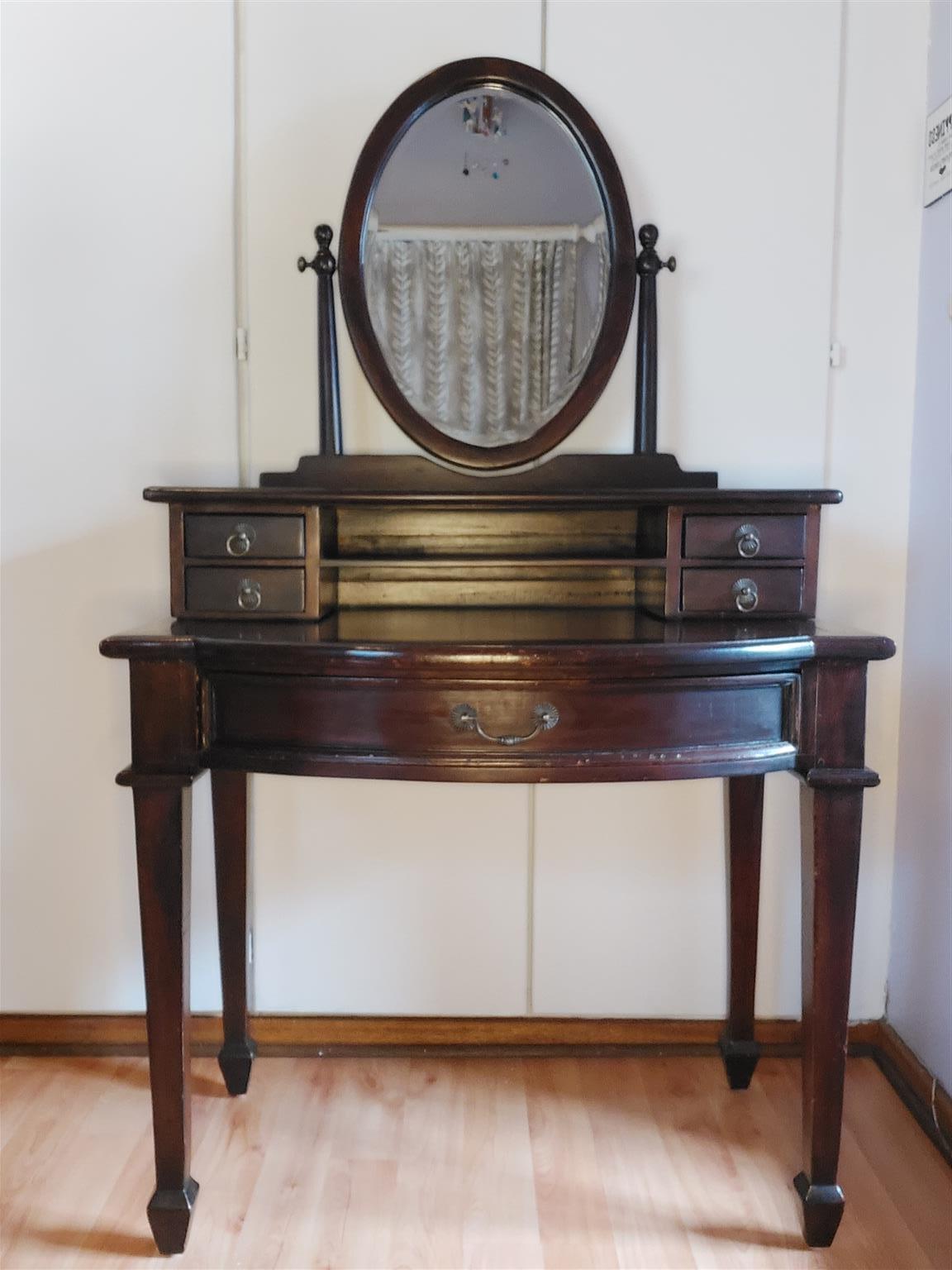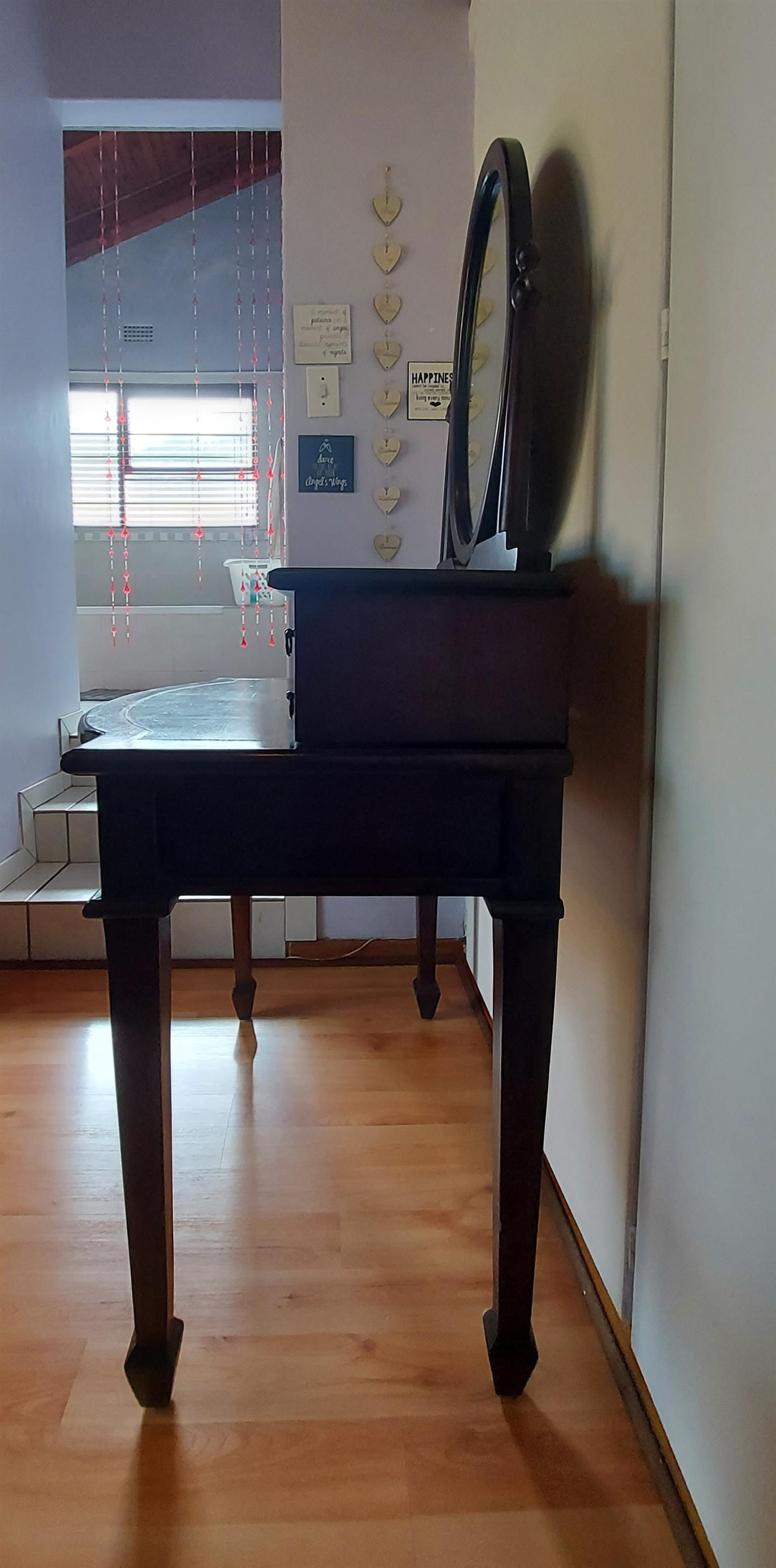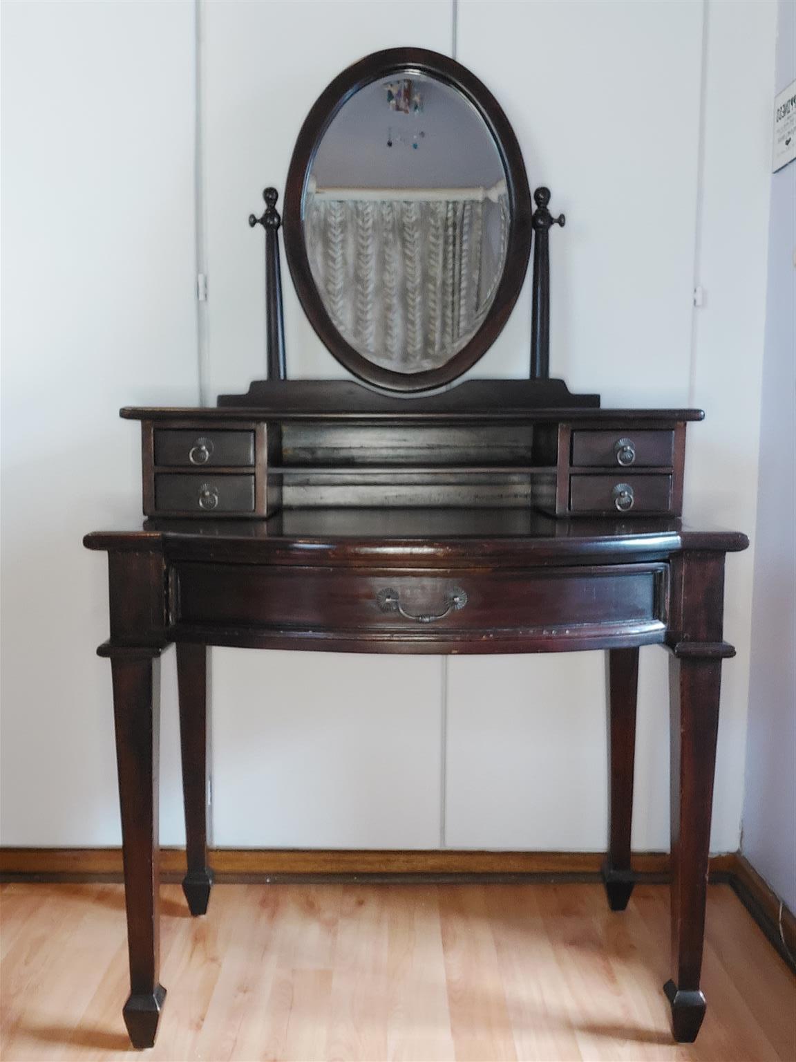 Dainty dresser with mirror in good condition with 5 drawers. (L) 905 x (W) 590 x (H) 1600. Indonesian teak.