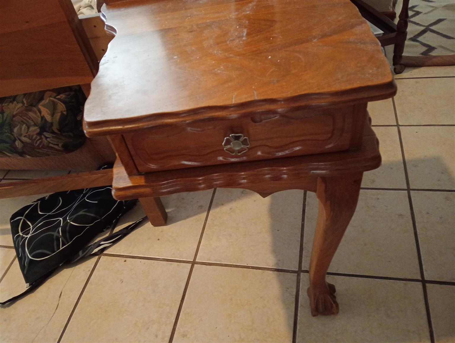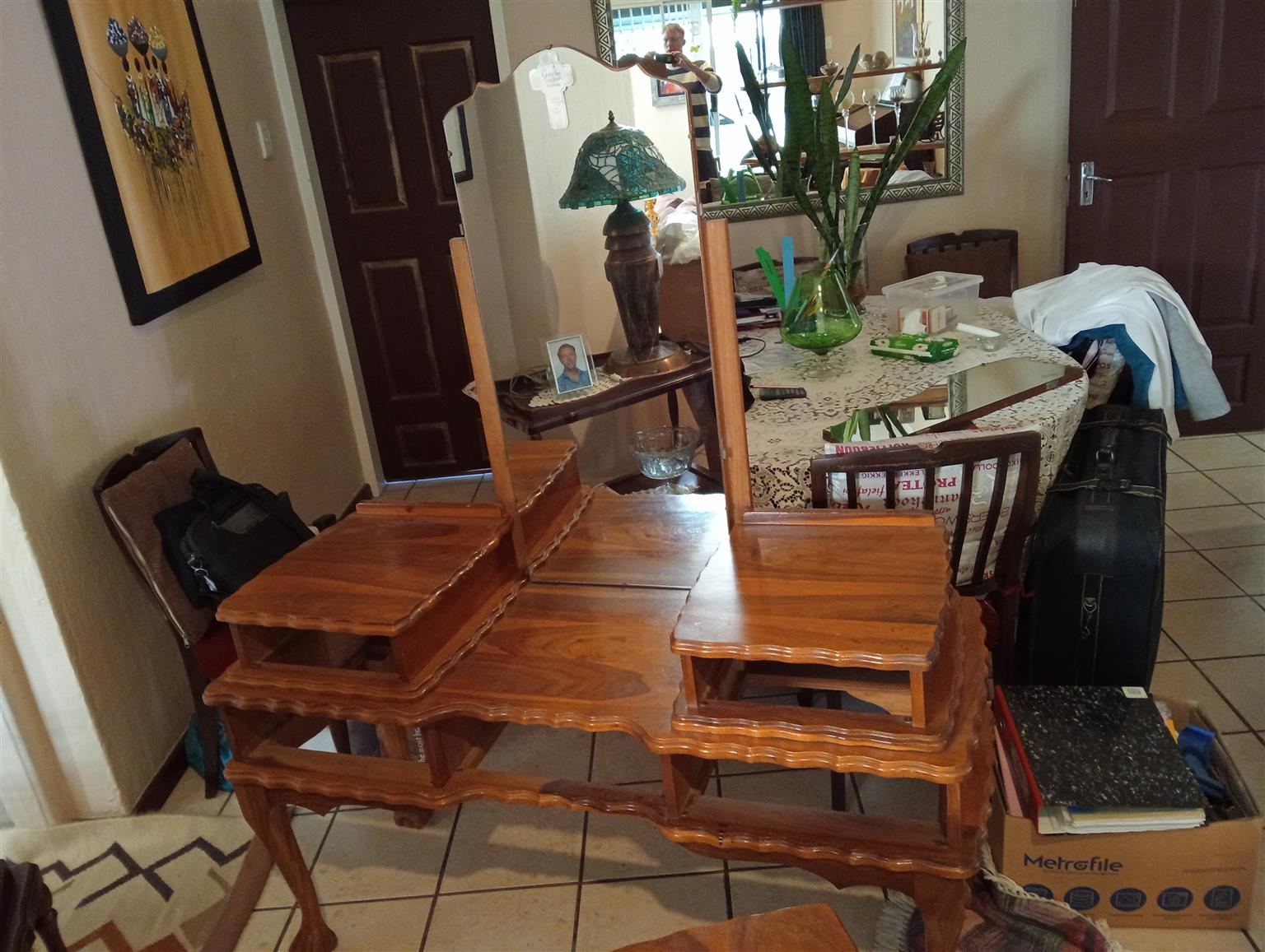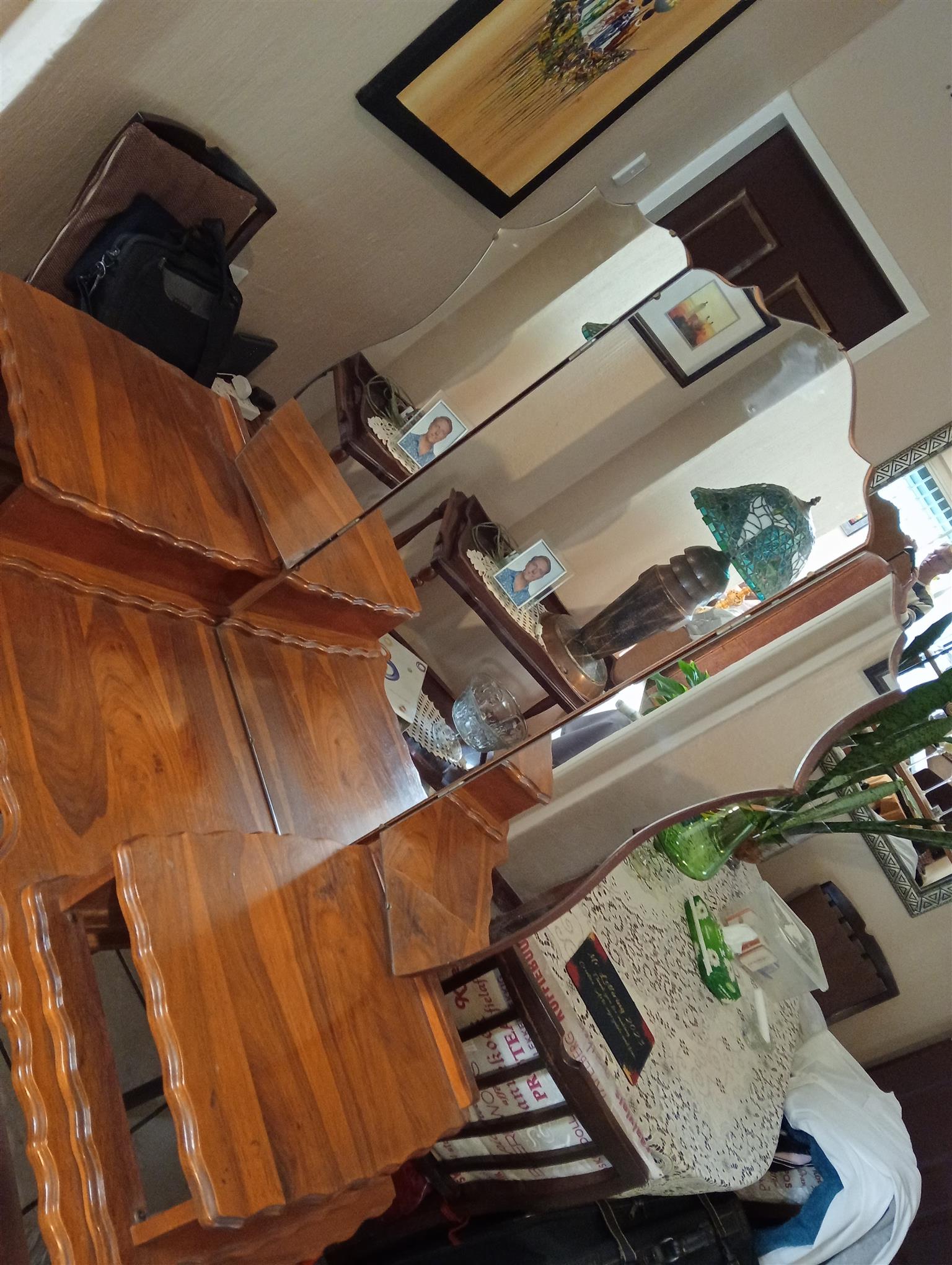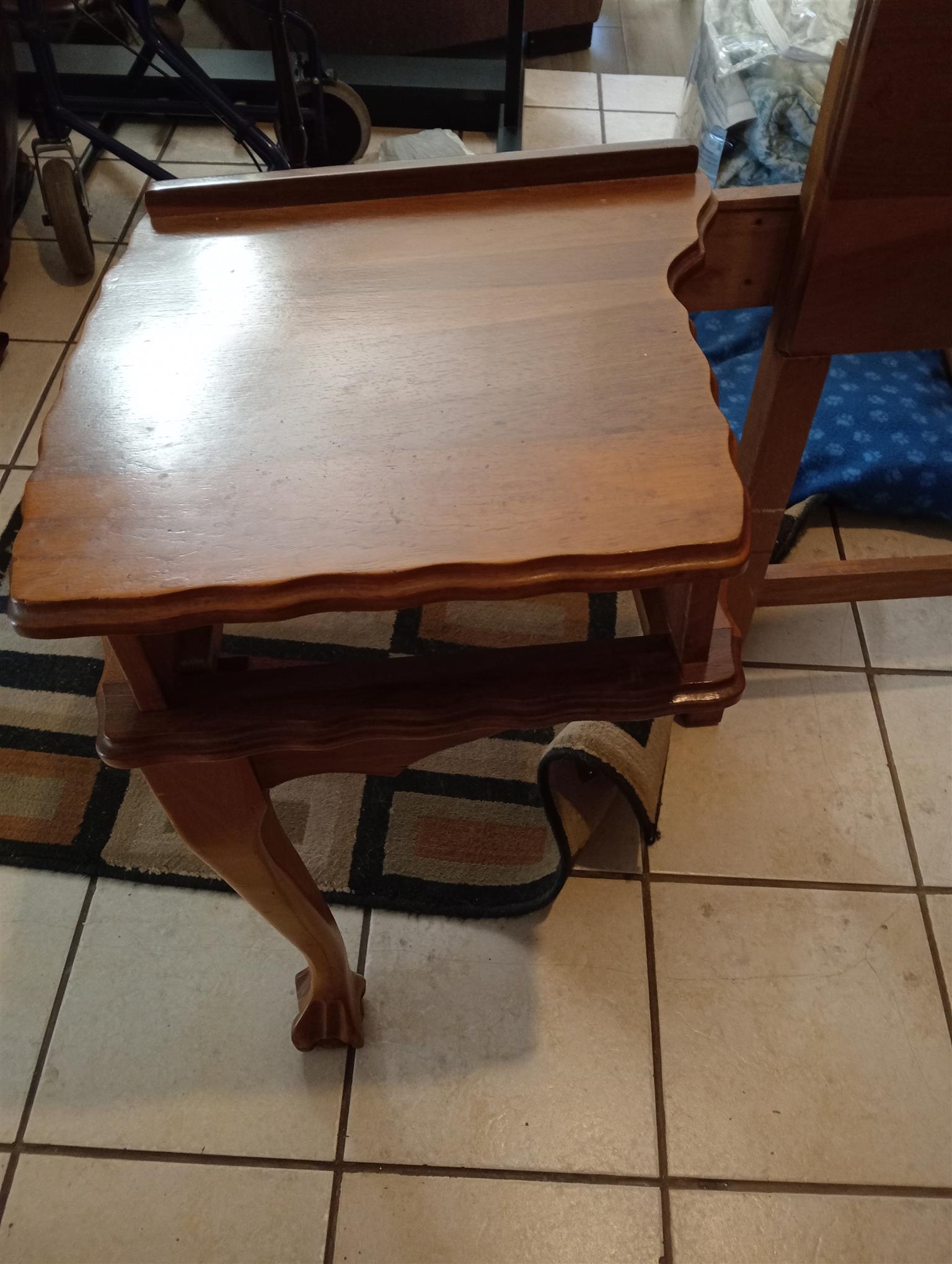 Dressing table and chair with headboard.