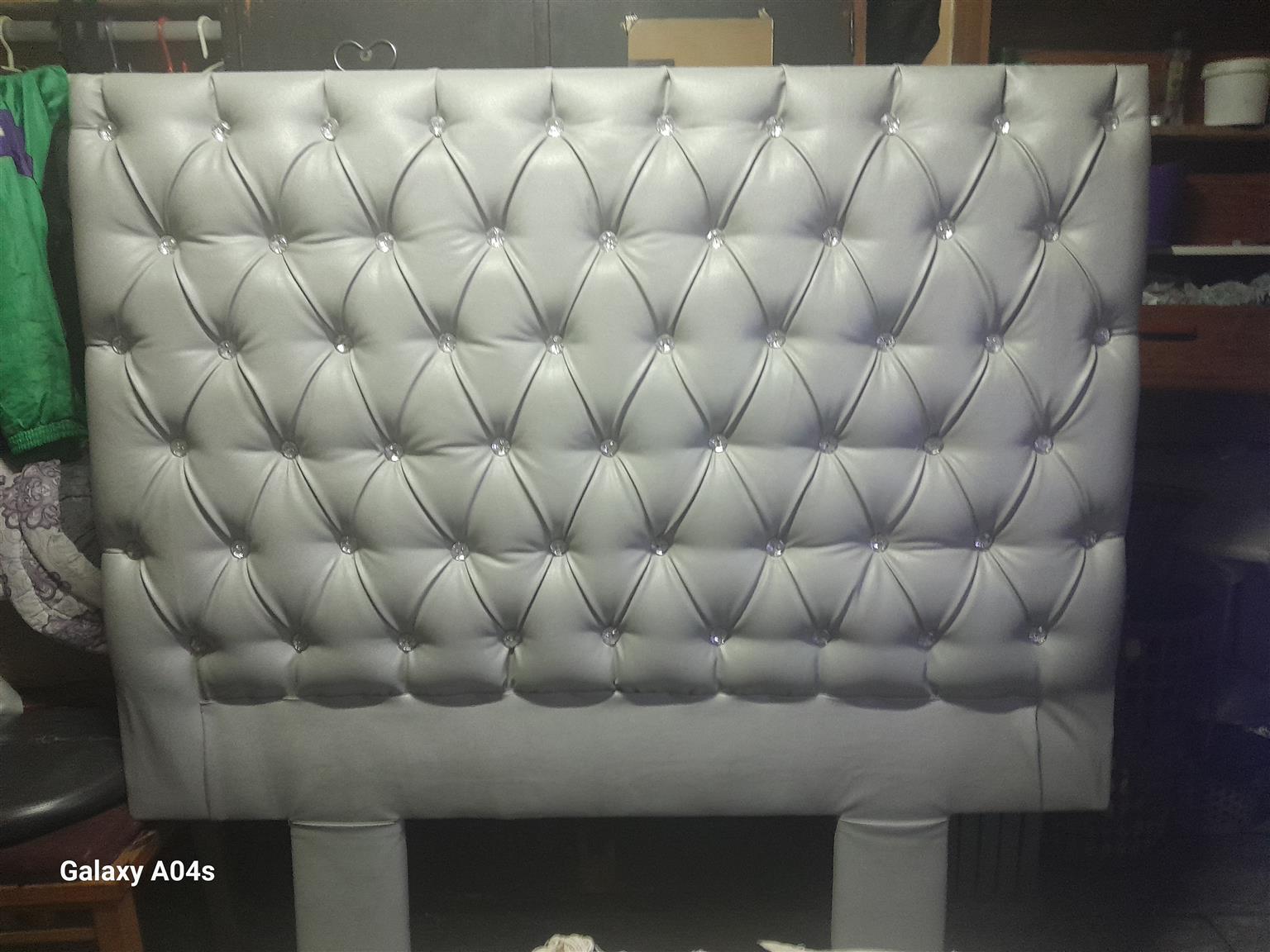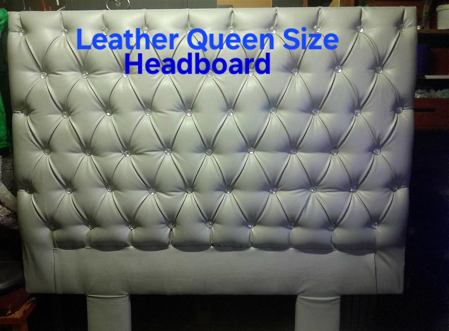 New Silver/Grey Leather Queen Size Headboard handcrafted for sale