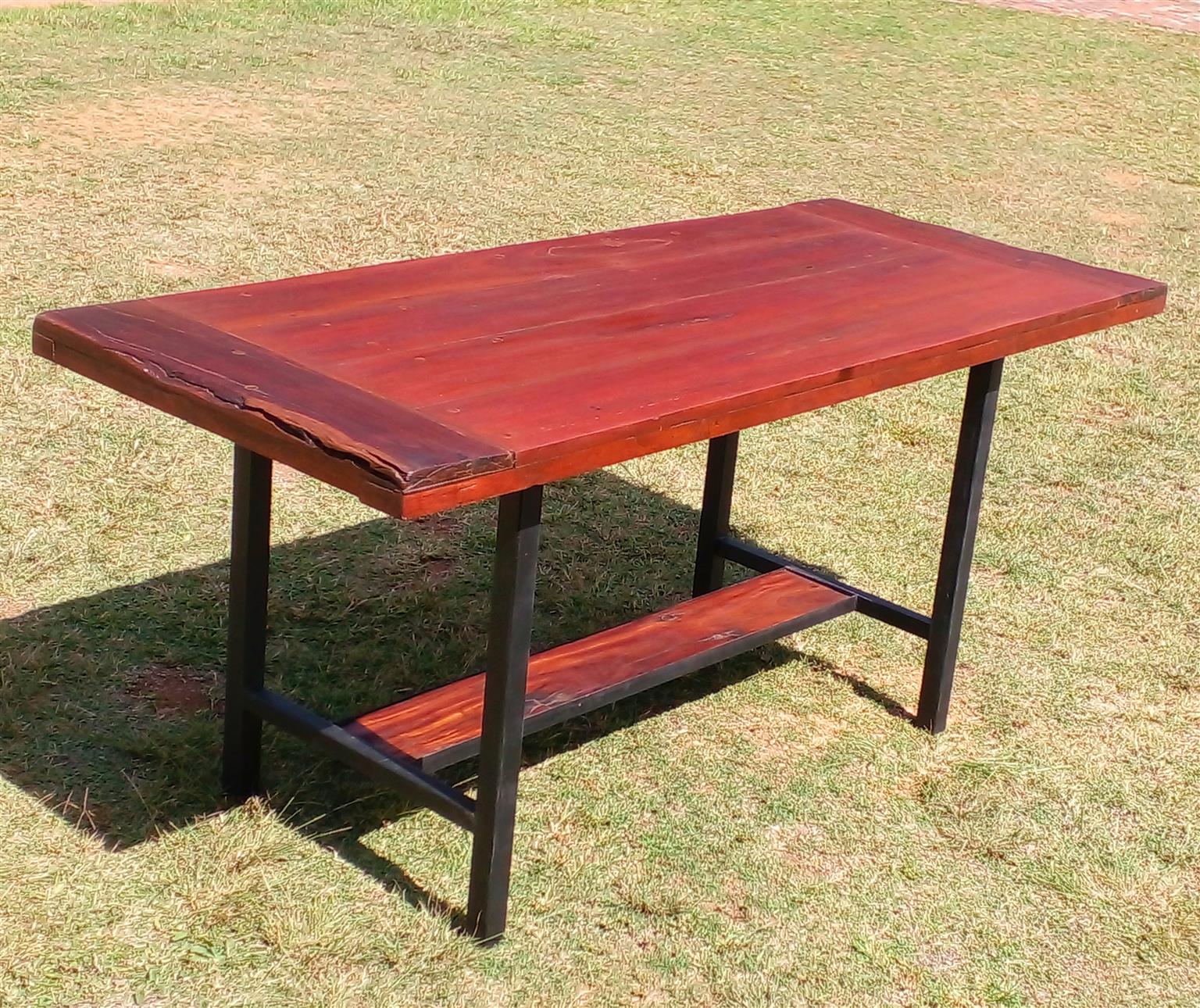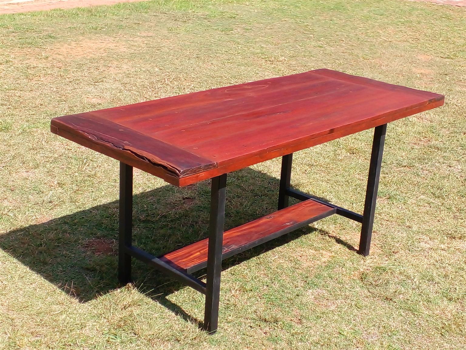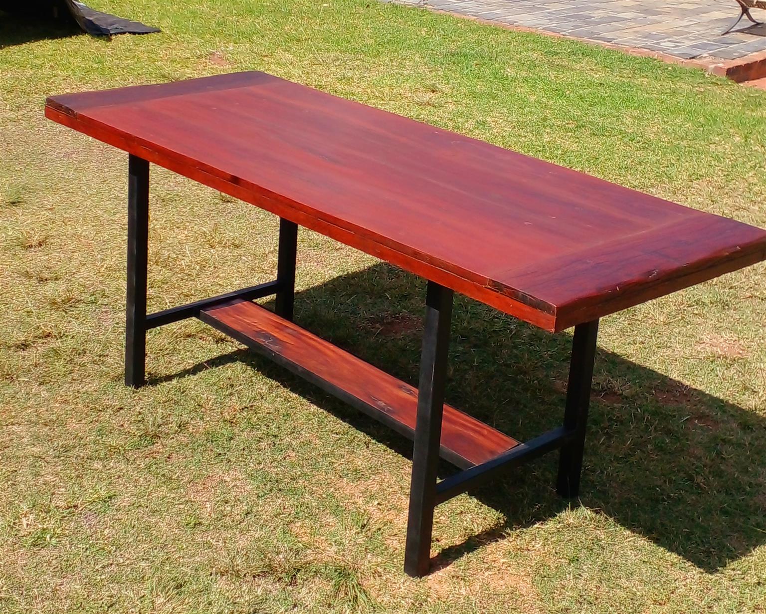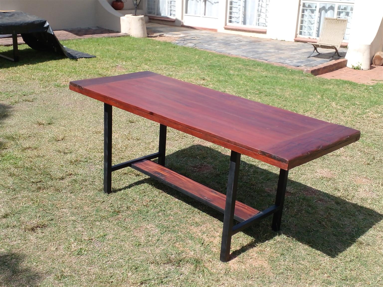 Rustic Bar table made with Railway Sleeper Timber. Solid wooden top with steel legs. 2200 mm long x 900 mm wide x approxx 930 mm high. Call me or chat to view in Randburg.