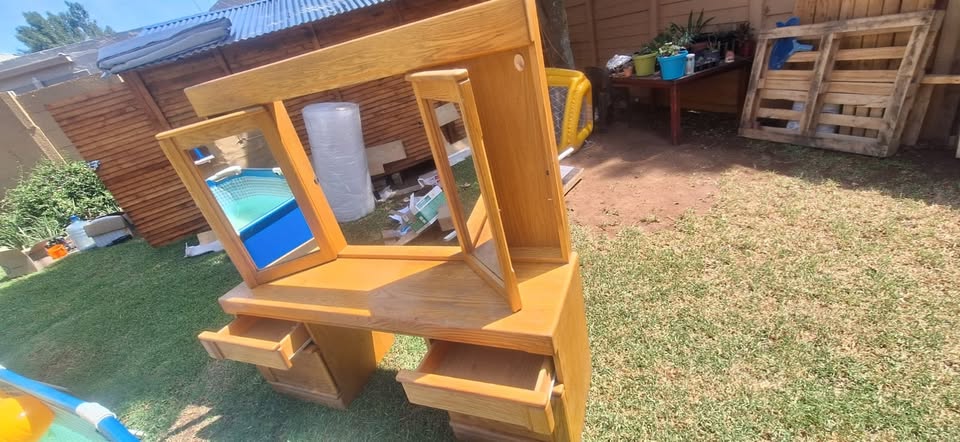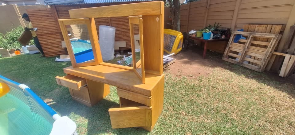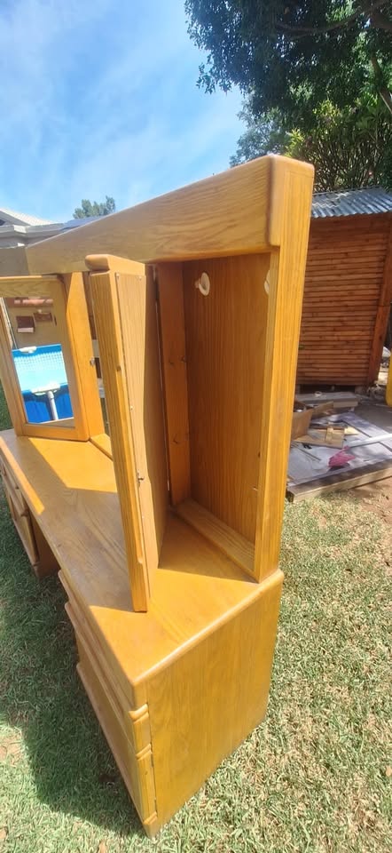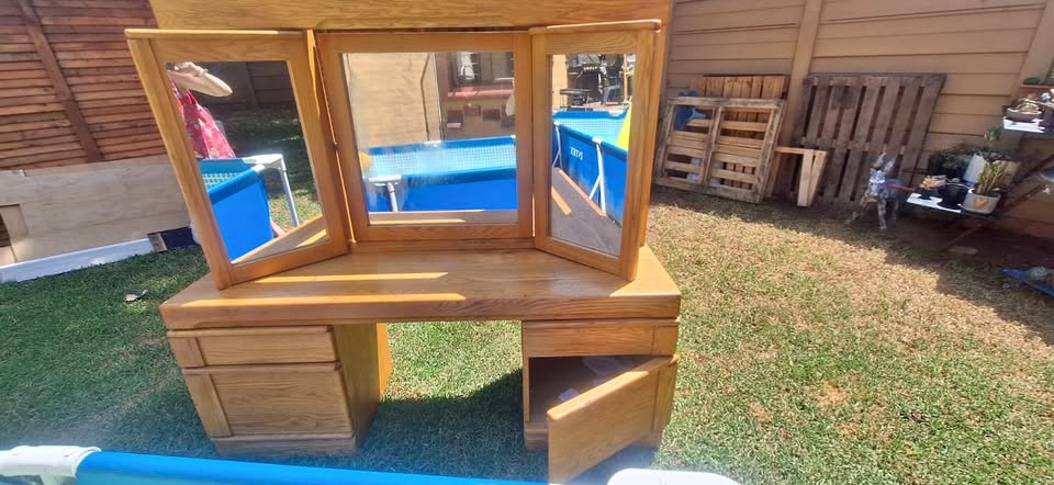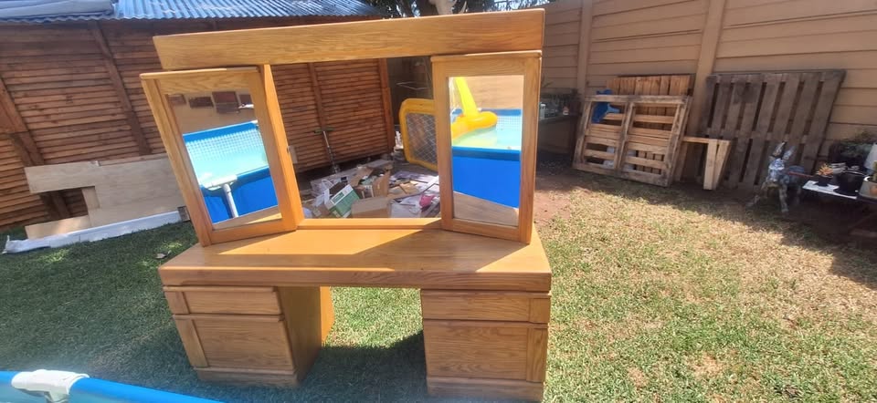 Absolutely stunning Solid Oak Dressing Table for sale. It has loads of storage space, mirrors that move as well as drawers and cupboards. Reason for selling: I have moved and it is too big for my tiny apartment. Collection: Based in Northriding Contact: Mitzi