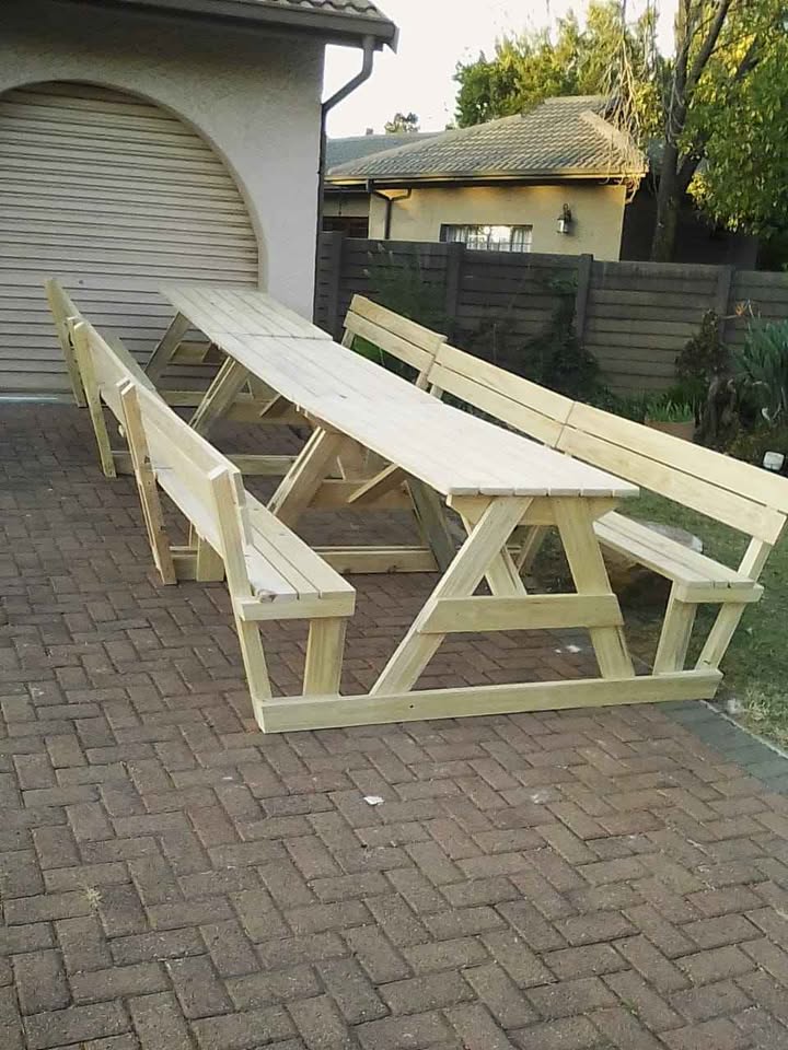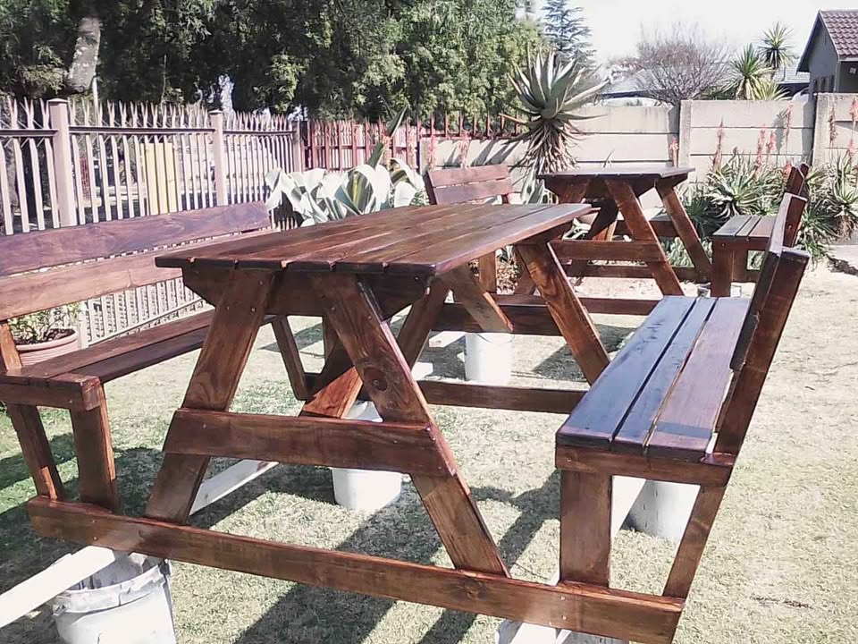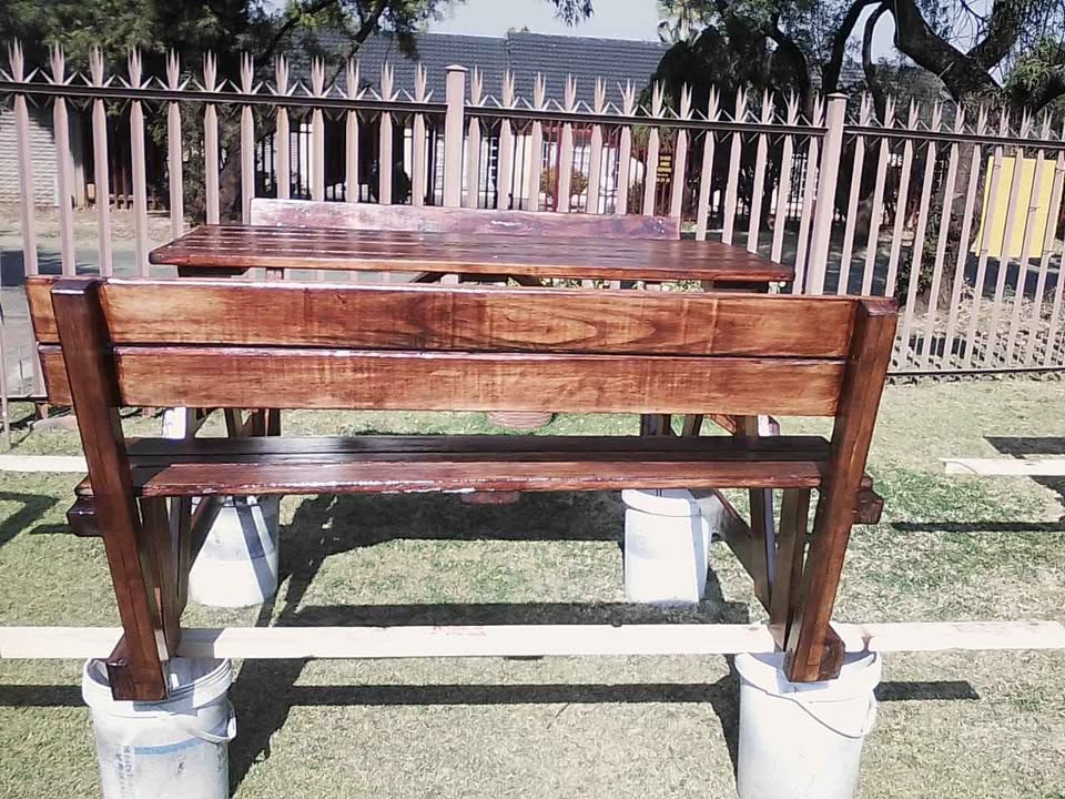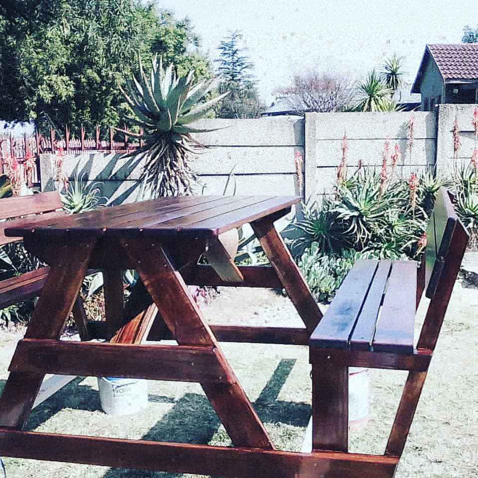 Stunning outdoor bench. Seats 4. Made from the highest quality SA kiln dried pine and treated with woodoc50 to withstand the elements. Contact janine now to place orders.