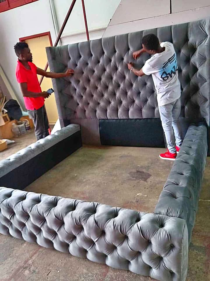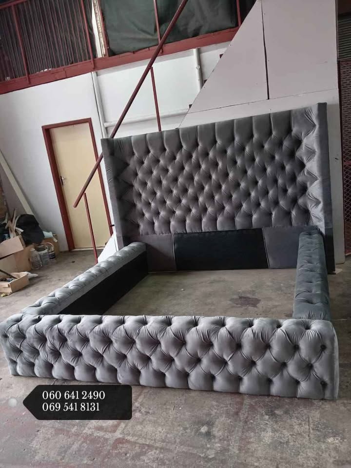 Elevate your bedroom with these stunning tufted XL king size bed. XL king size Sleighbed R3600. XL king size Headboard R5200 . Call or whatsapp / for more enquiries.