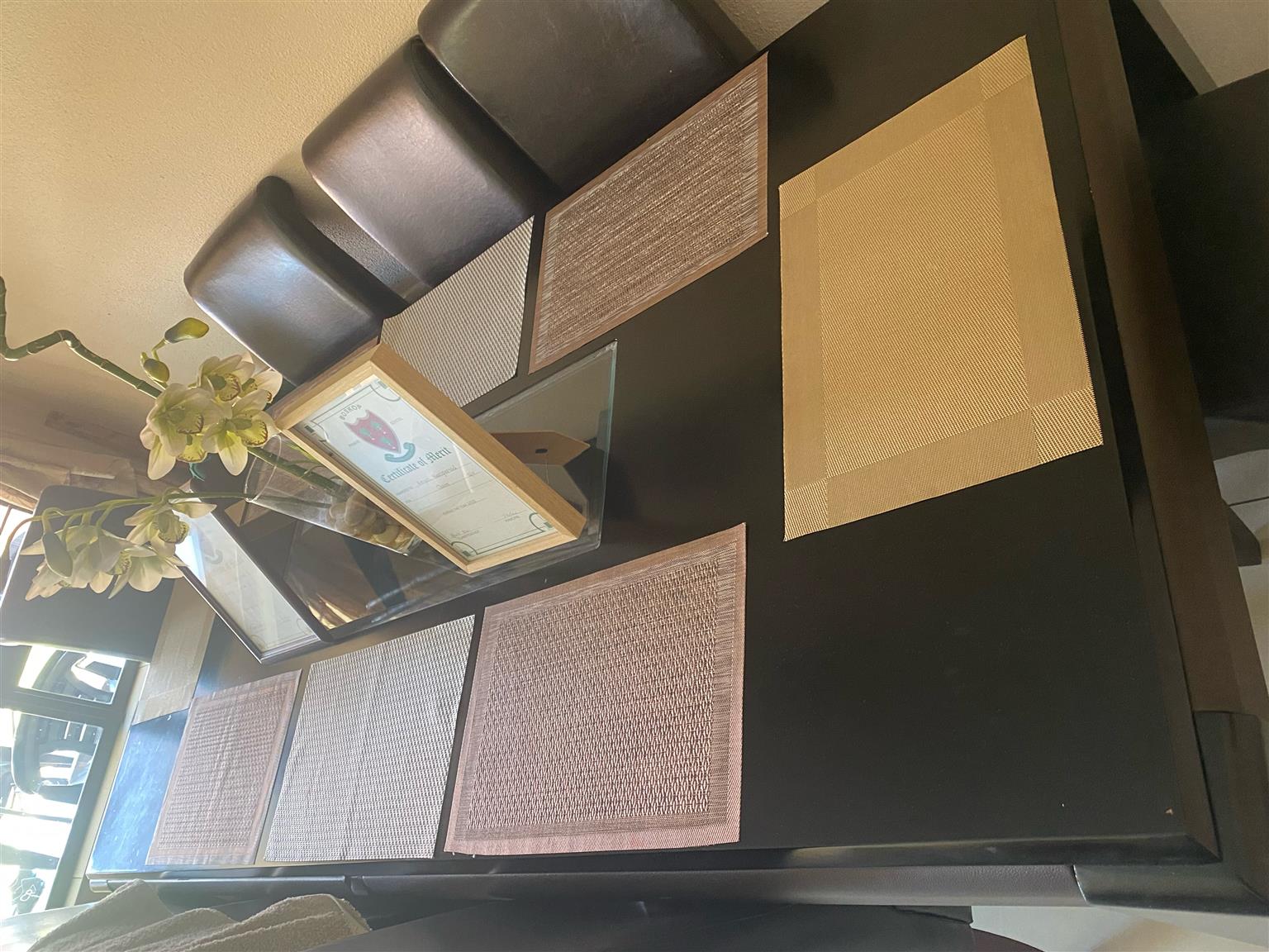 I have a leather sleigh bed with two bedside table, it is extra large queen size, I have 1 x single bed and base and I have a 8 seater dining table set , the sleigh bed and dining table set I bought from Rochester and the single bed I bought from Russels.
