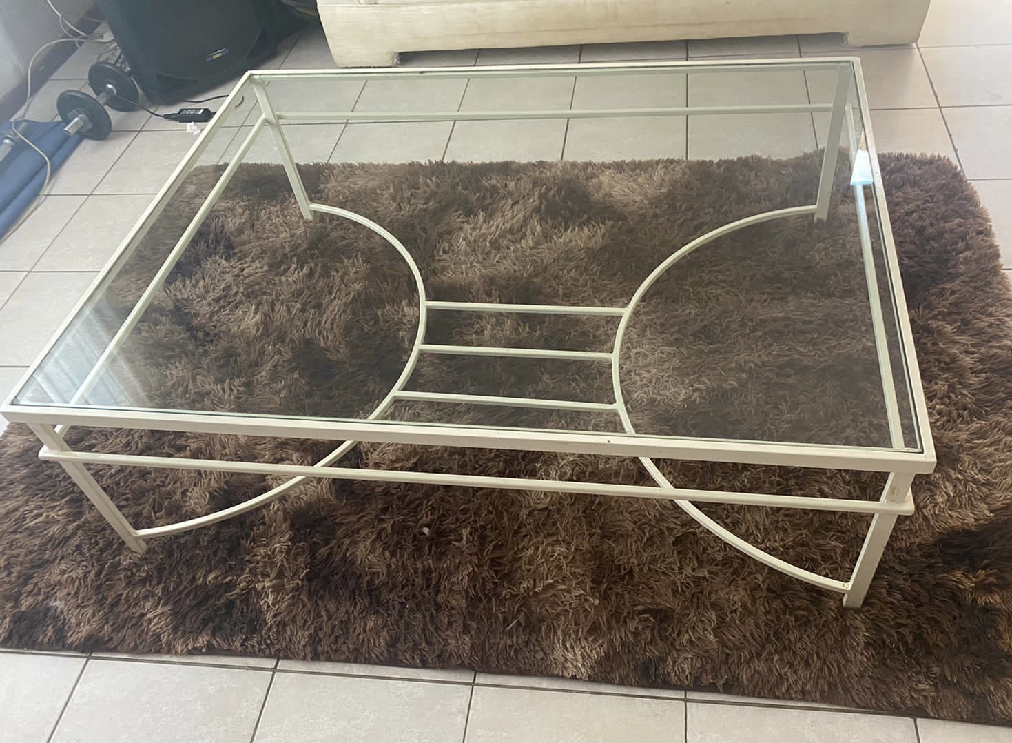 Big white coffee table with 10mm glass top and matching server good condition.