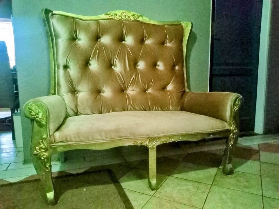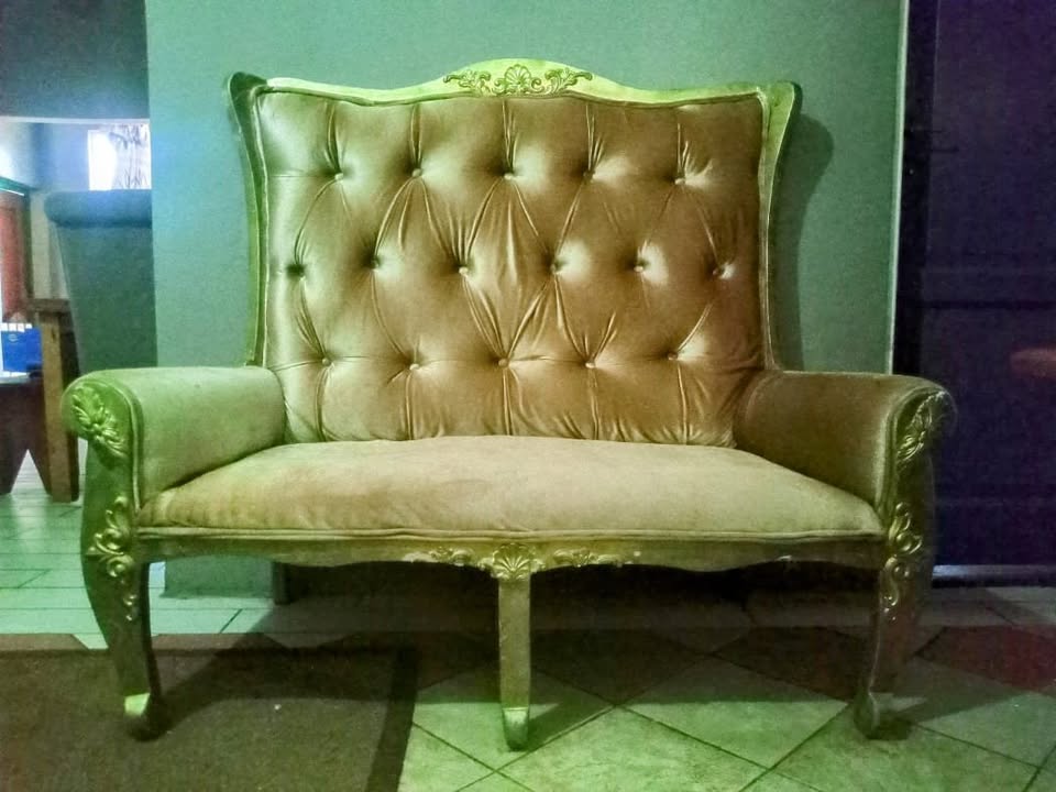 Highback two seater golden sofa. Very good condition. Collectors item.