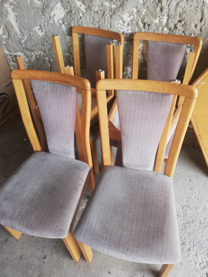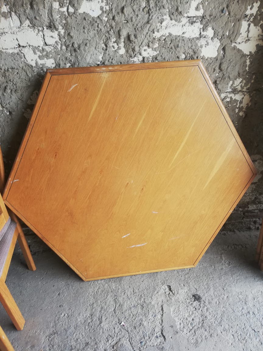 4 Bamboo Chinese awnings..R1000.dining room table top R1000..6 dining room oak chairs R1000 and marble stand with copper rod R1000