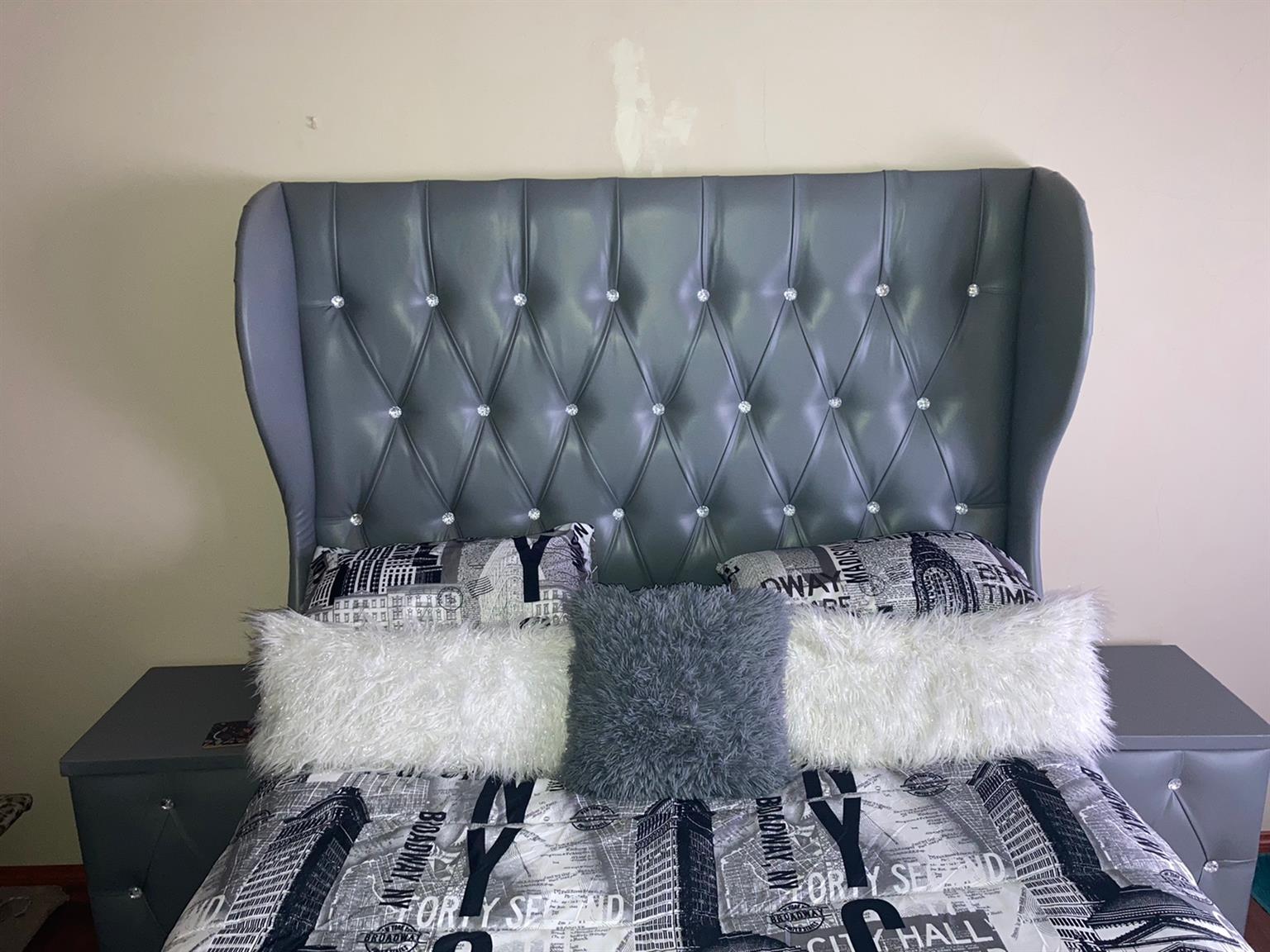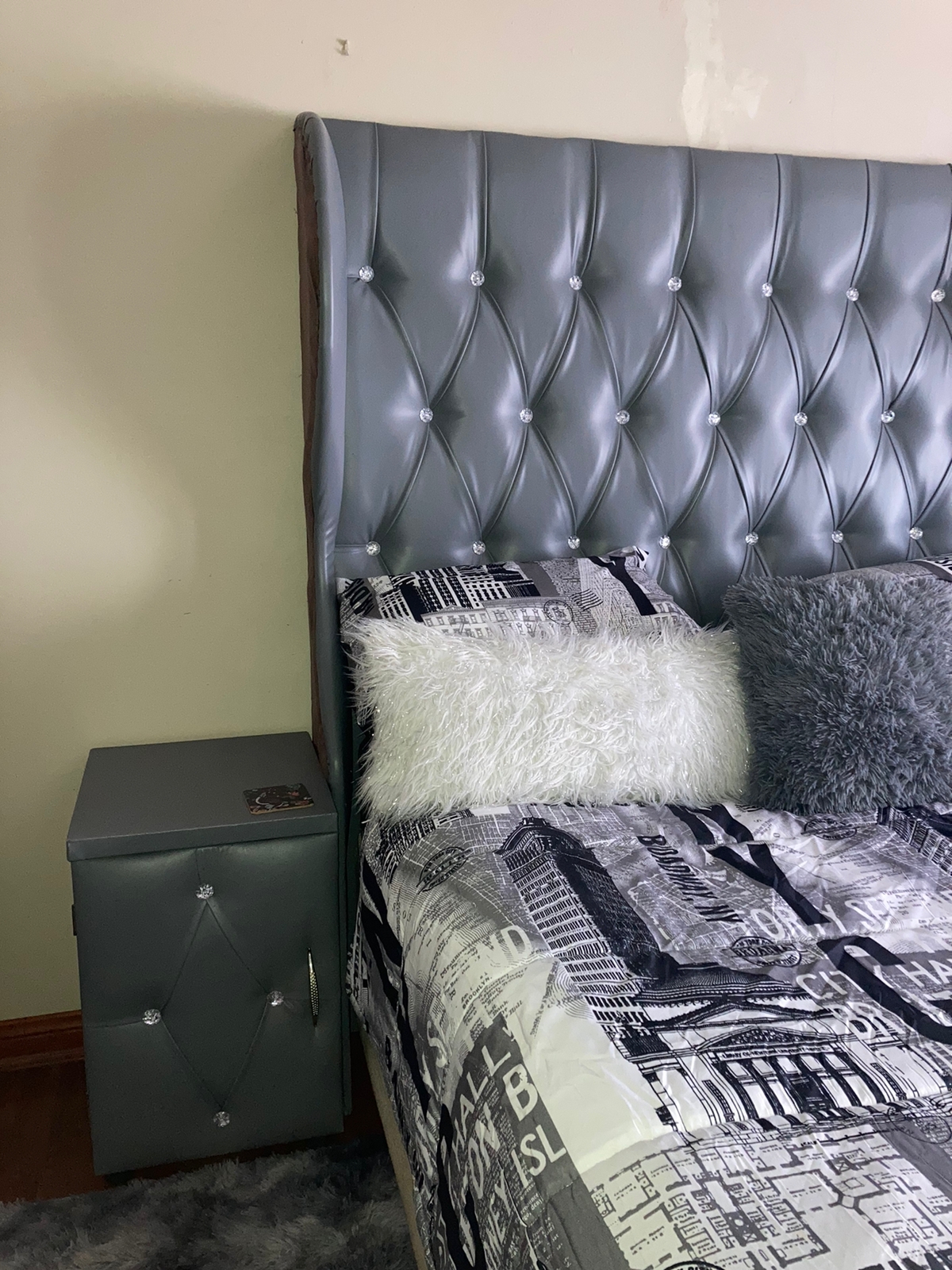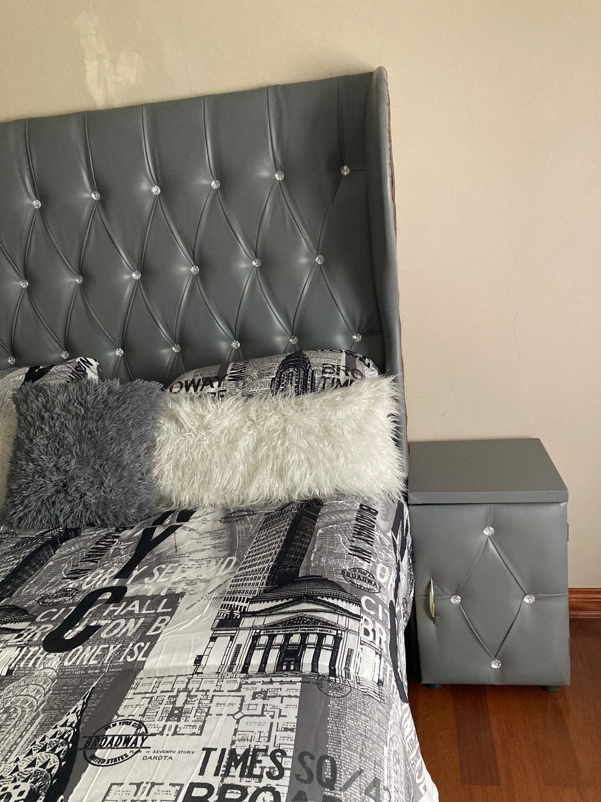 Grey Leather Headboard Set (Incl Bedside Tables). More details: