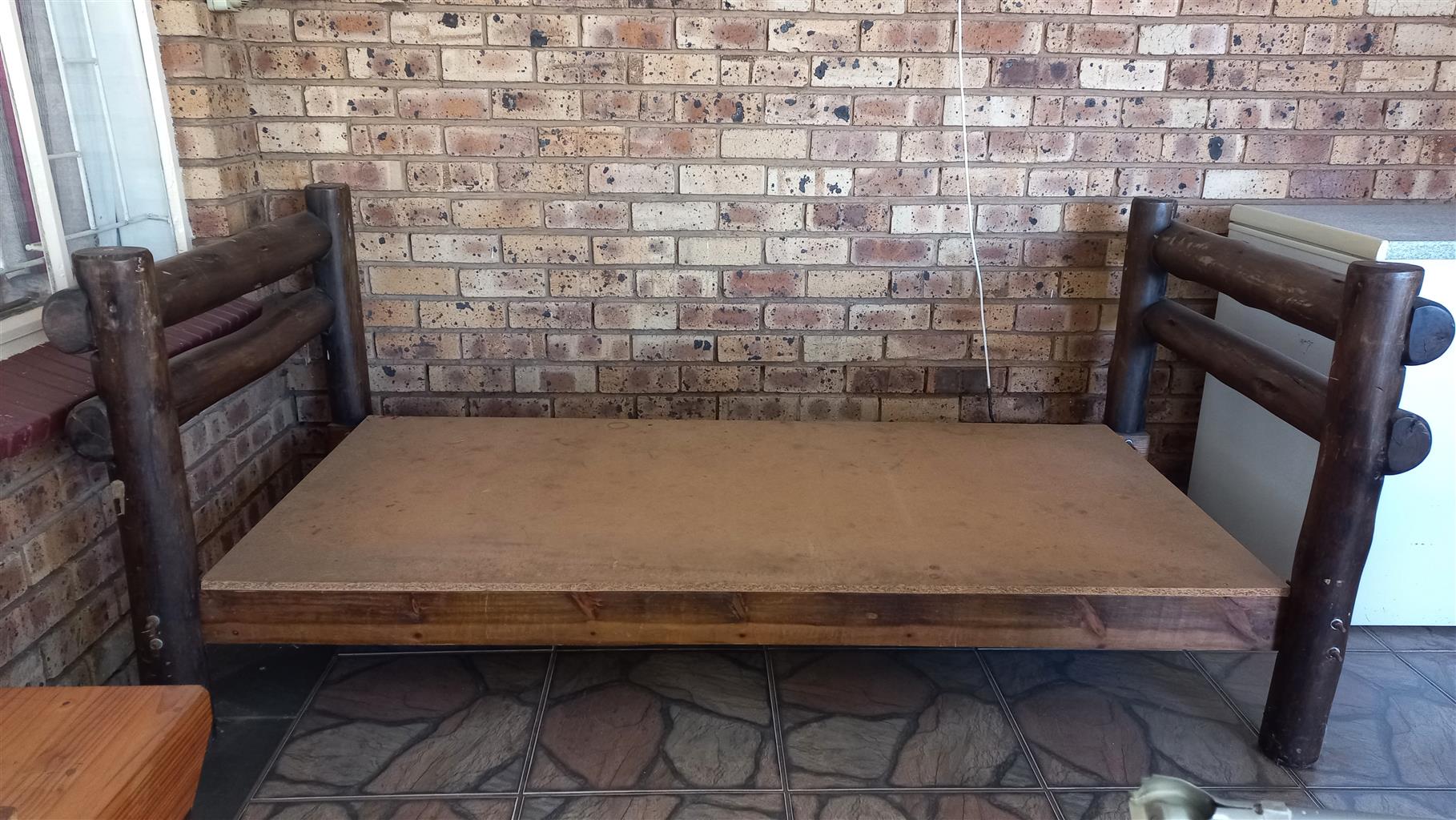 Two single log beds with mattresses for sale. R2000 FOR BOTH BEDS. In good condition, needs to go its in the way. Can be used as bunk beds as well.