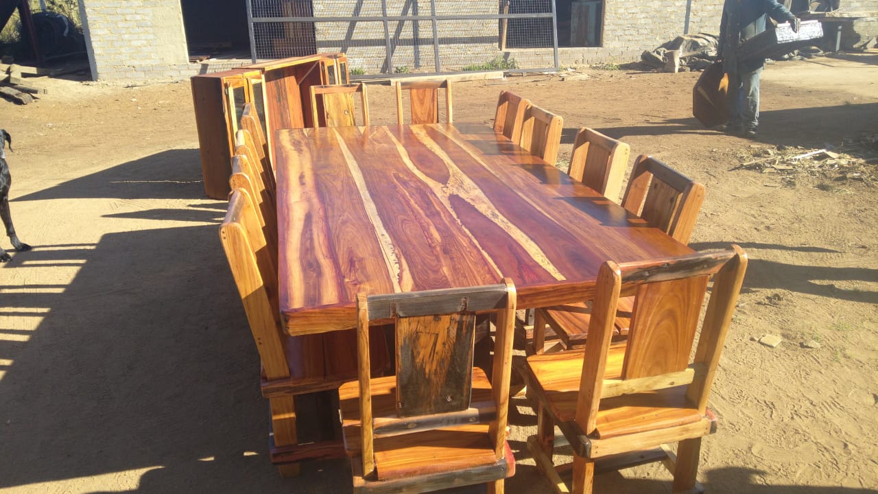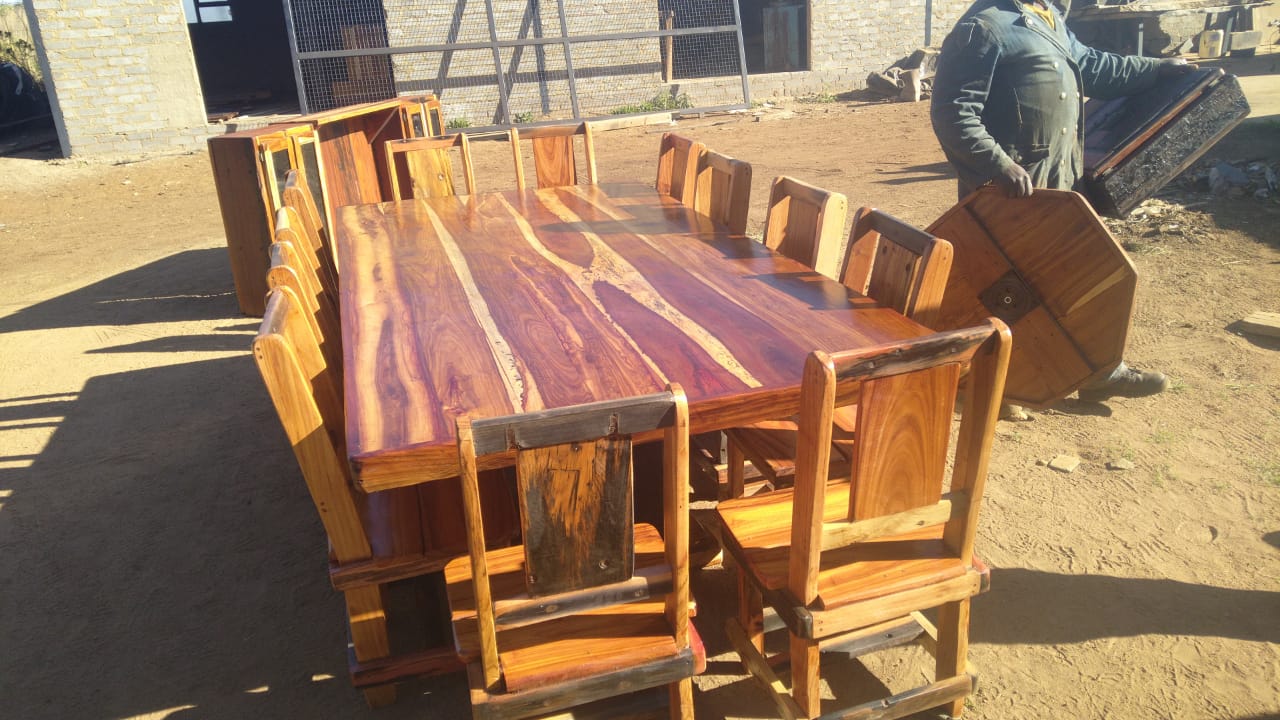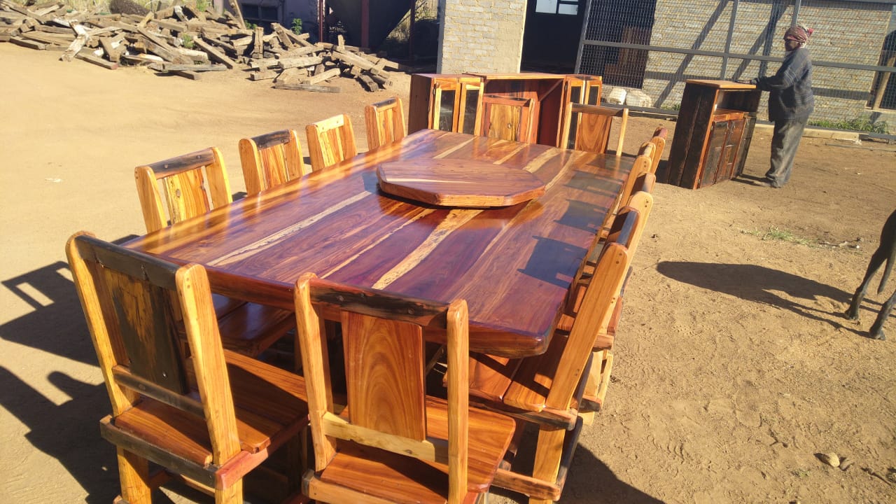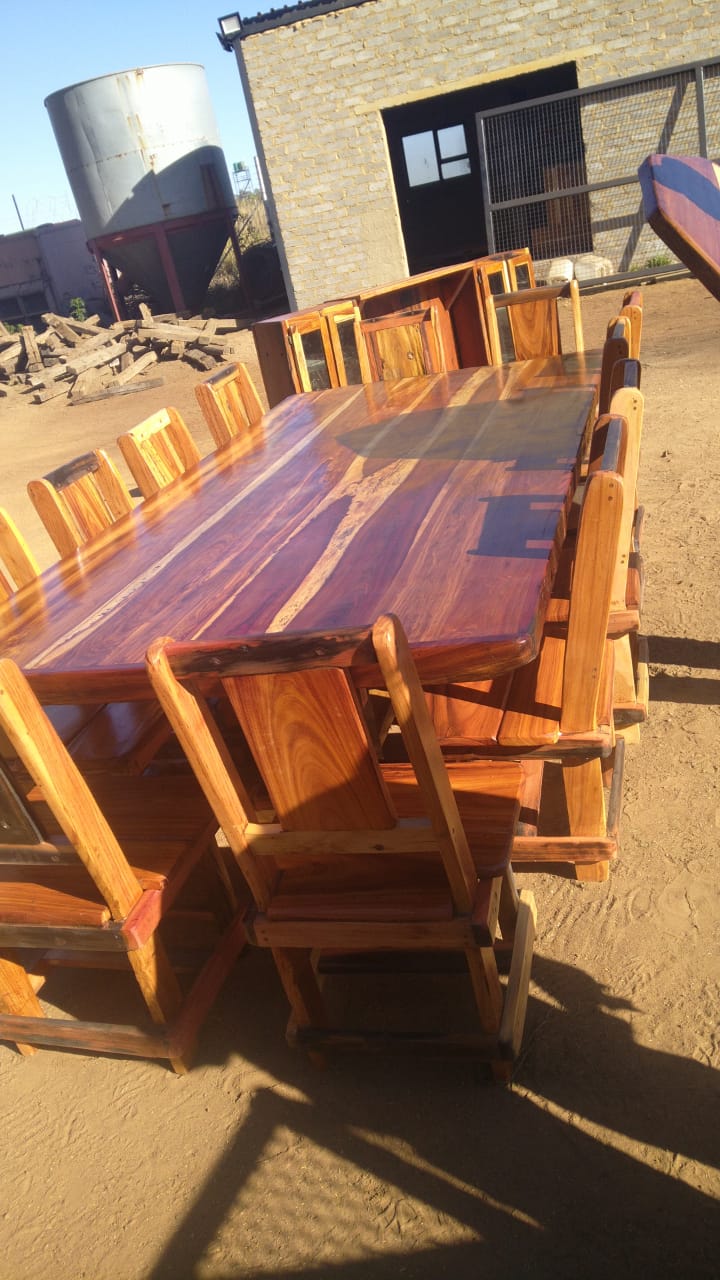 12 seater dining room suite for sale. Get a free dart board cupboard with your order.