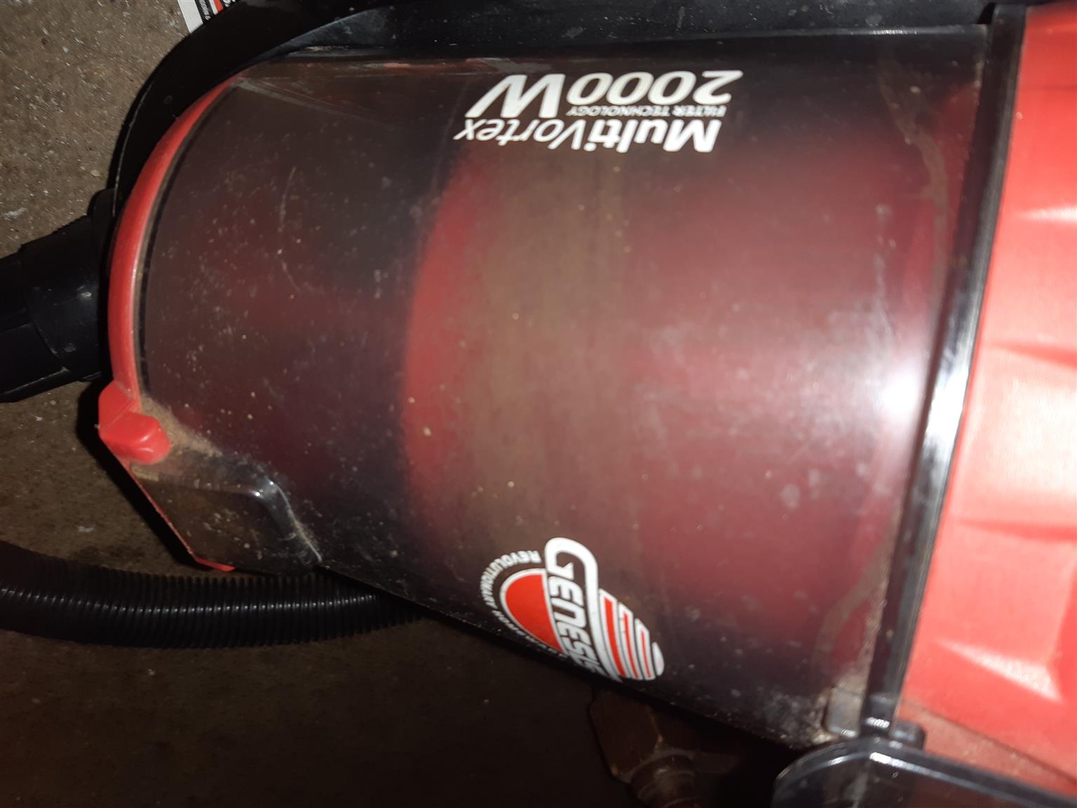 Genesis dry,bagless vacuum cleaner 2000w With pipes has washable sponge filter and cable retractable mechanism all in perfect working order
