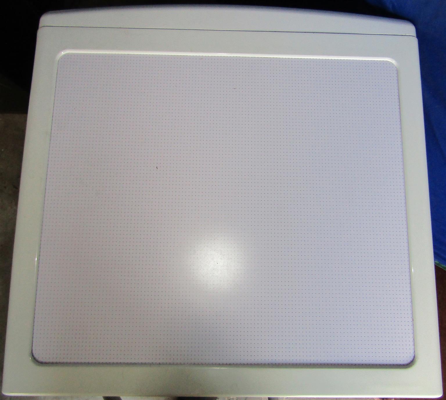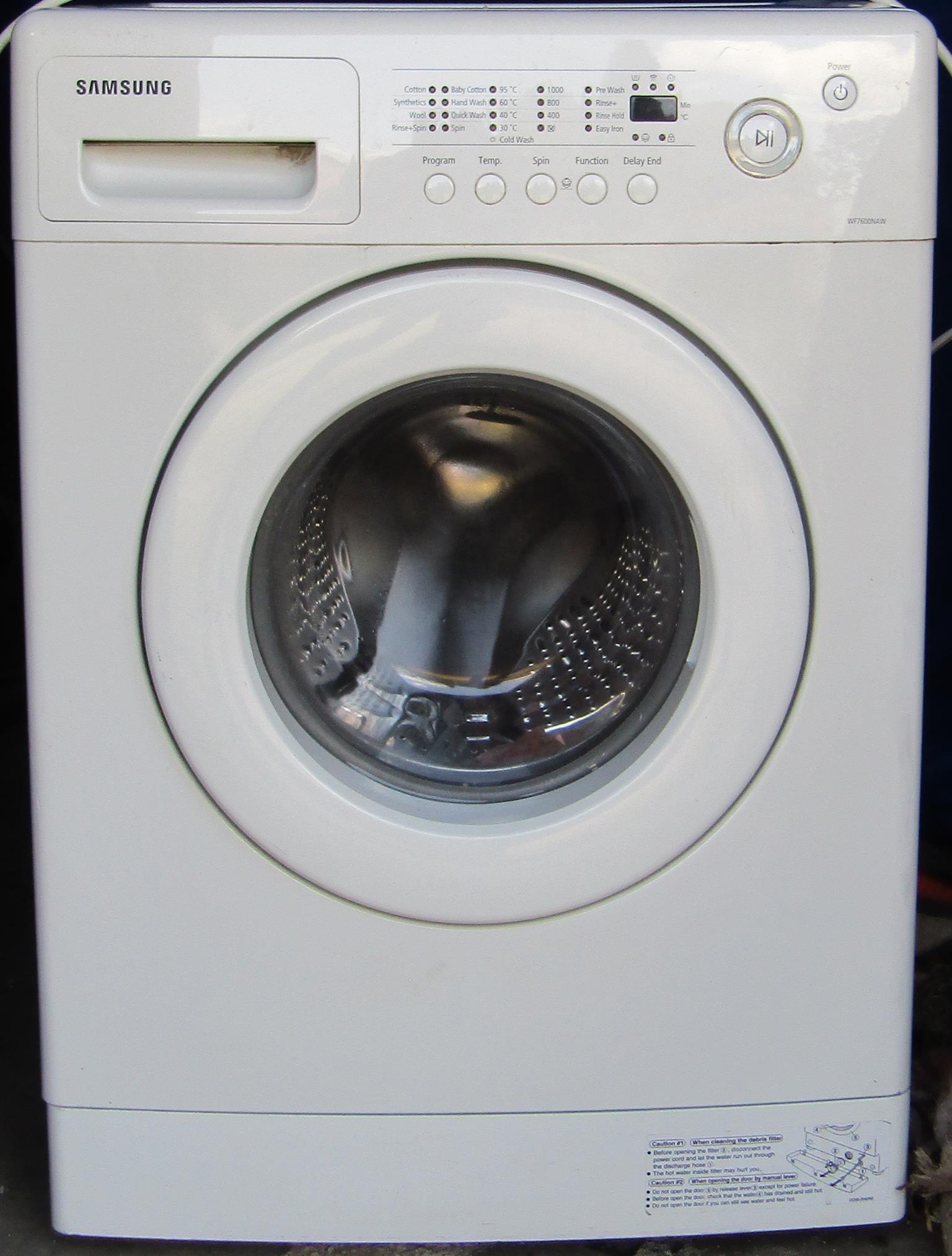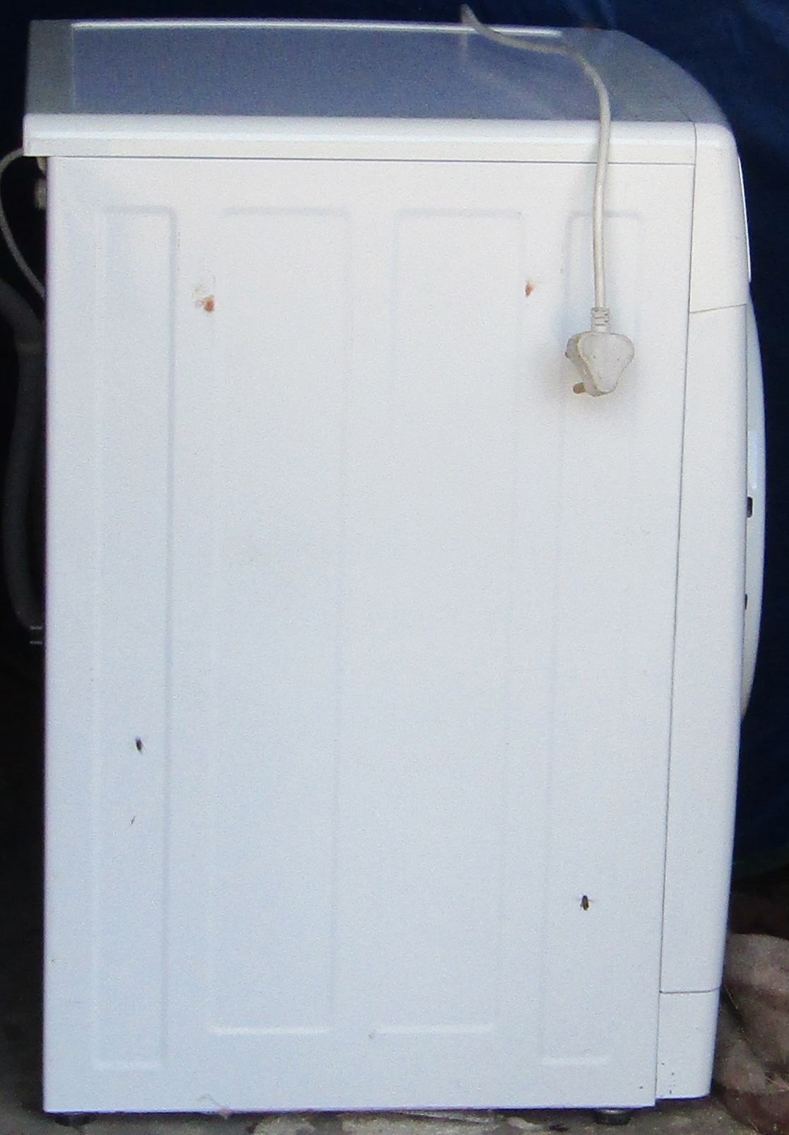 Item used but still looking good. Note the one detached paddle inside the drum. The machine comes on and goes through all its cycles but does not drain; I suspect the pump bearings have failed.