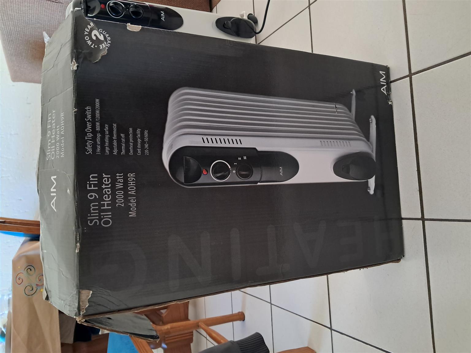 Aim Slim 9 Fin Oil Heater 2000 Watt in excellent condition. Hardly ever used.. More details: