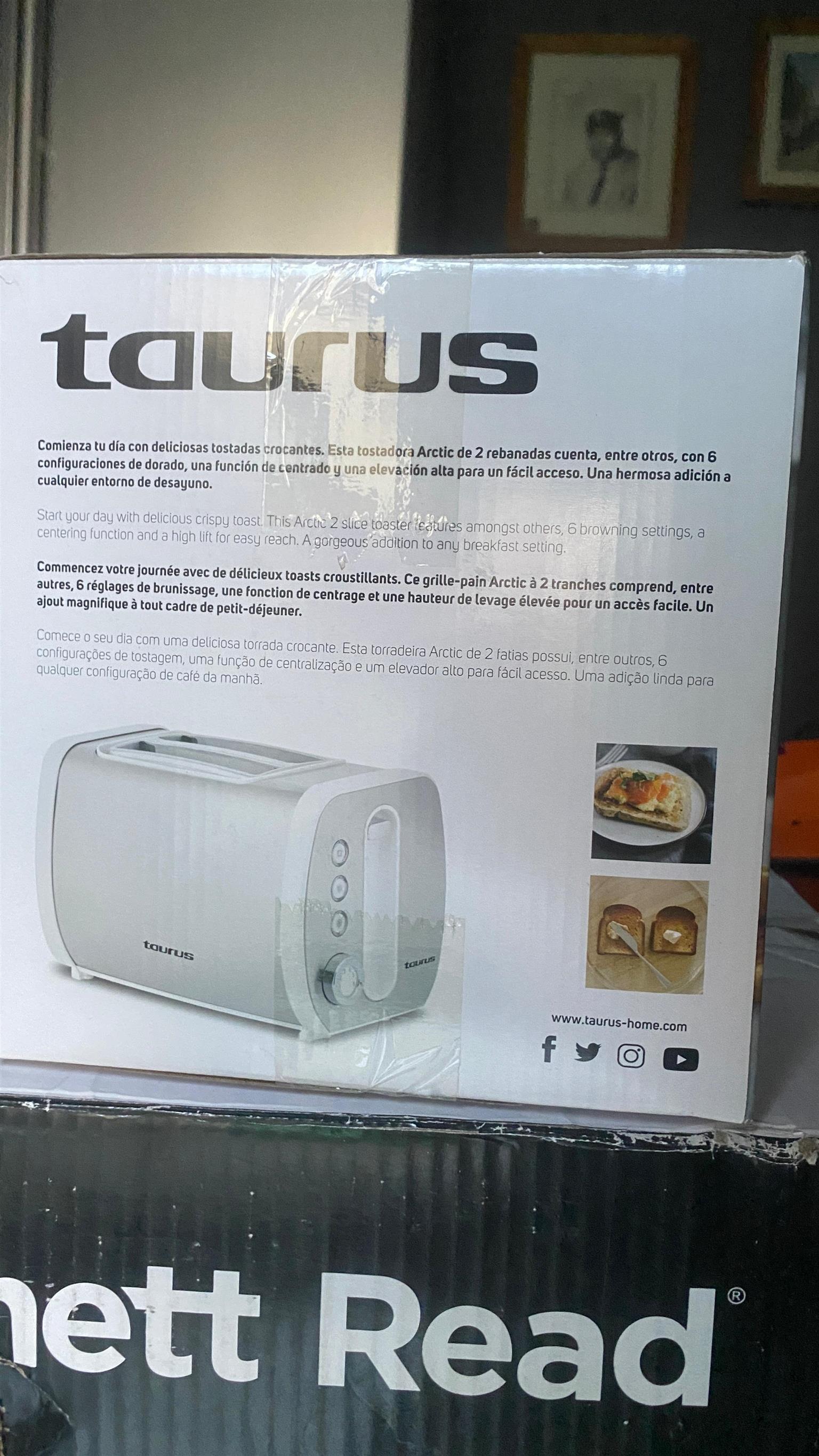 Taurus Toaster 2 Slice Stainless Steel With White Trim 7 Heat Settings 870W