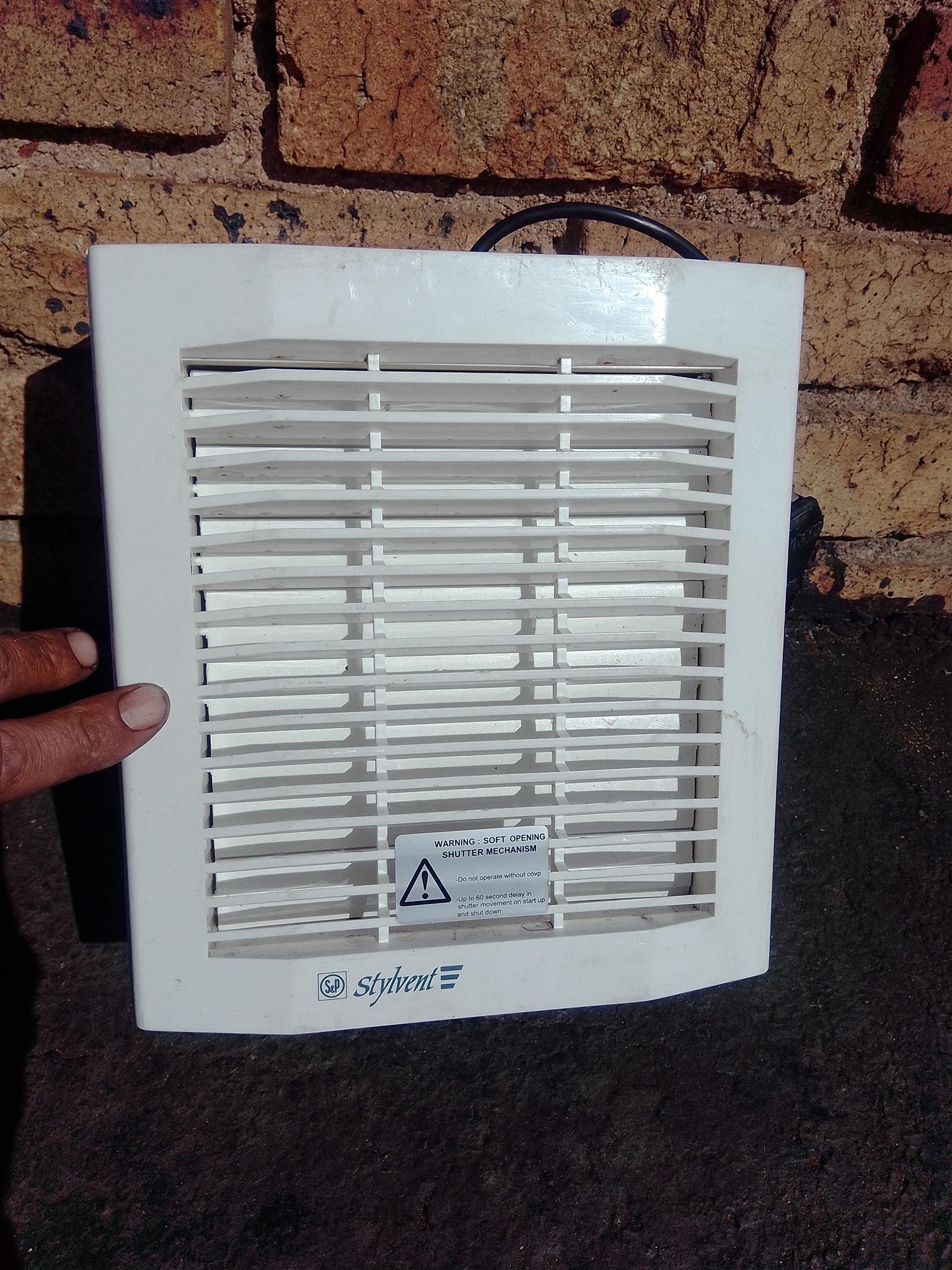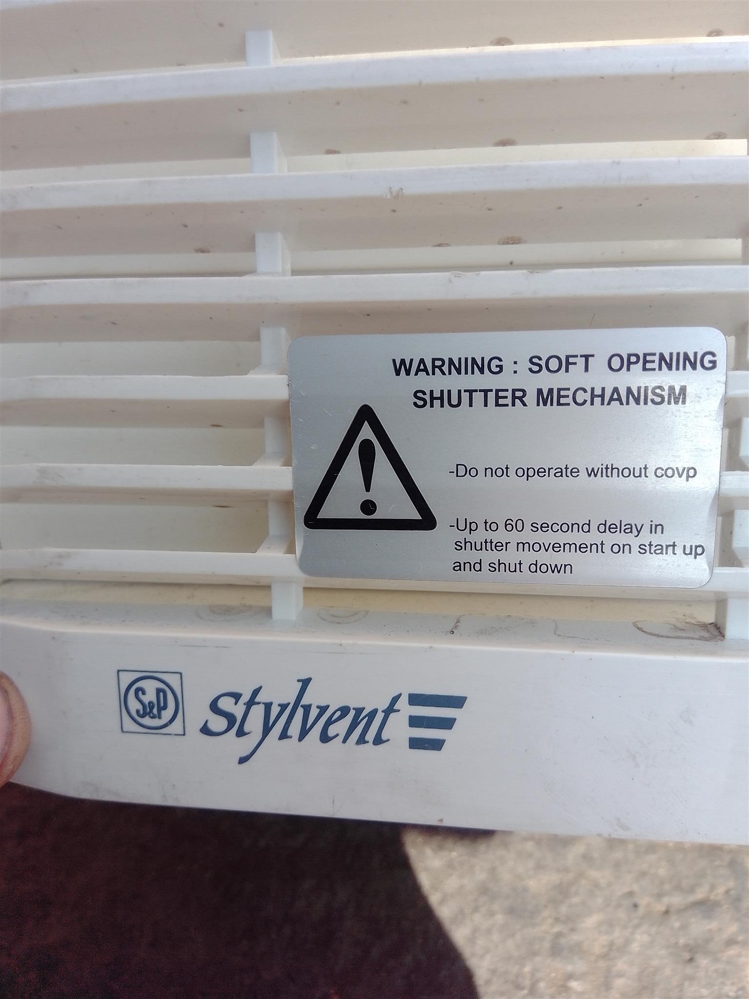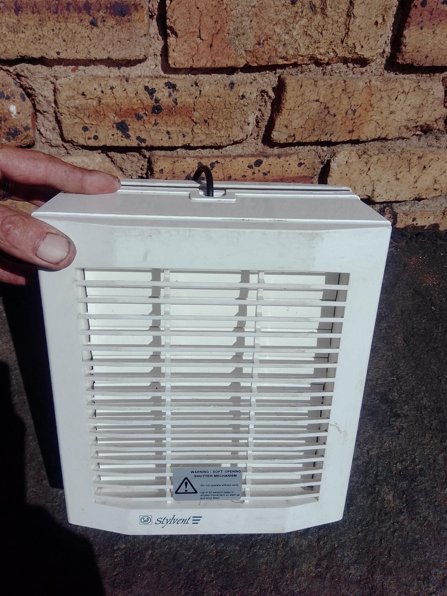 Fan Circulating Stylvent soft opening shutter mechanism S & P wall or window mountable for conference rooms, restaurants, showers, bathrooms.