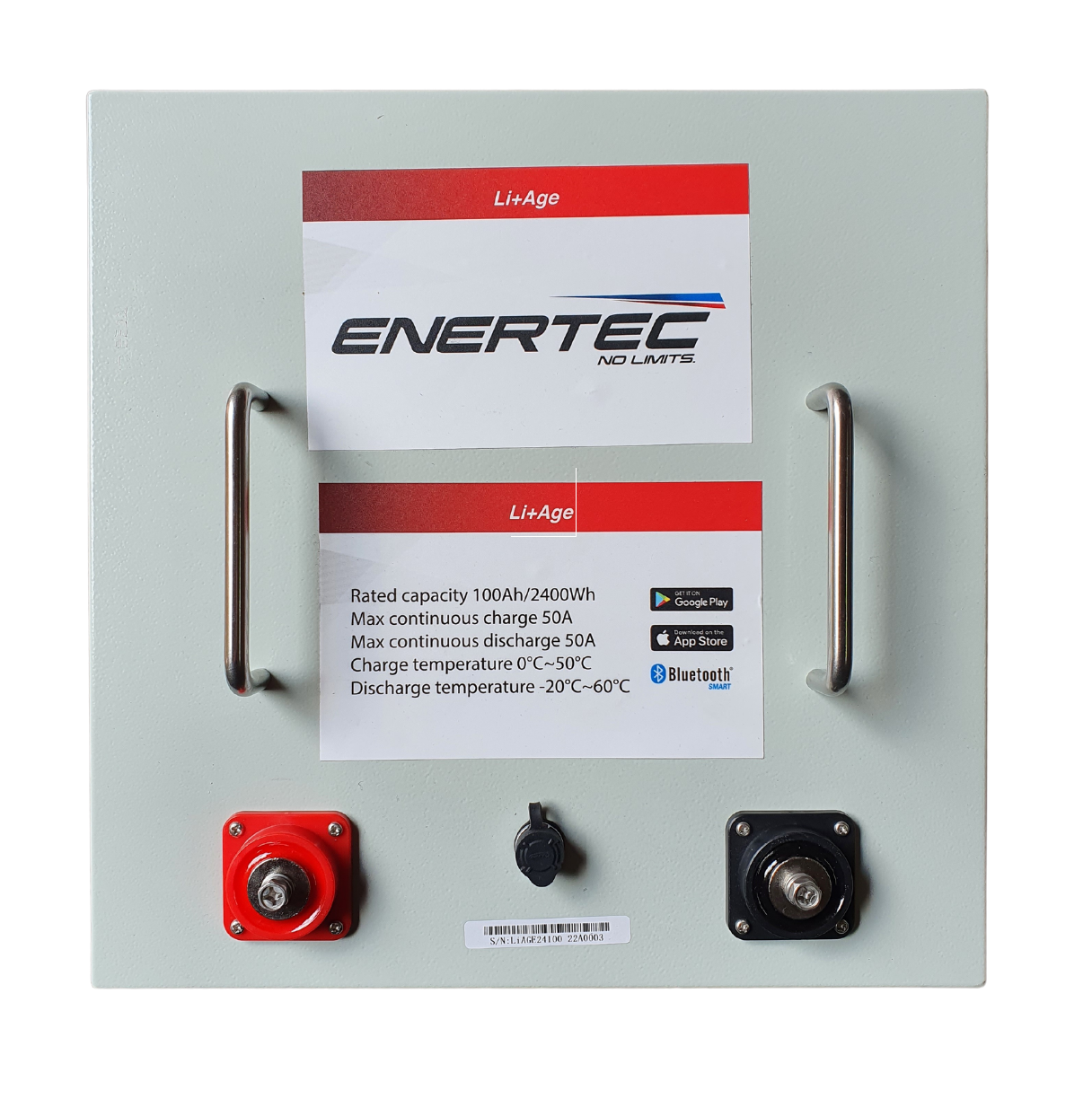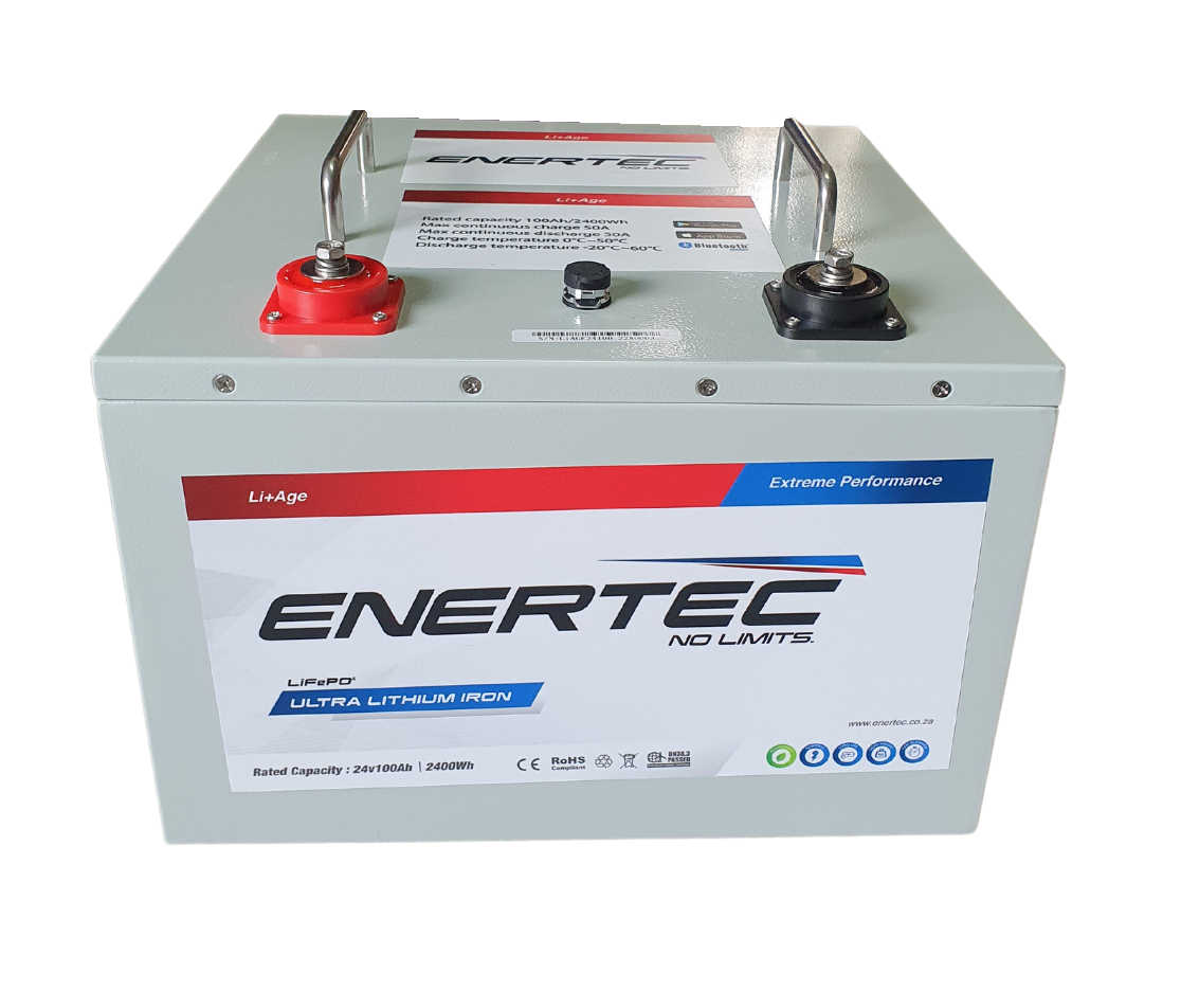 Enertec 24v 100Ah Lithium Ion Drop in Lead Replacement Battery with built in Bluetooth.