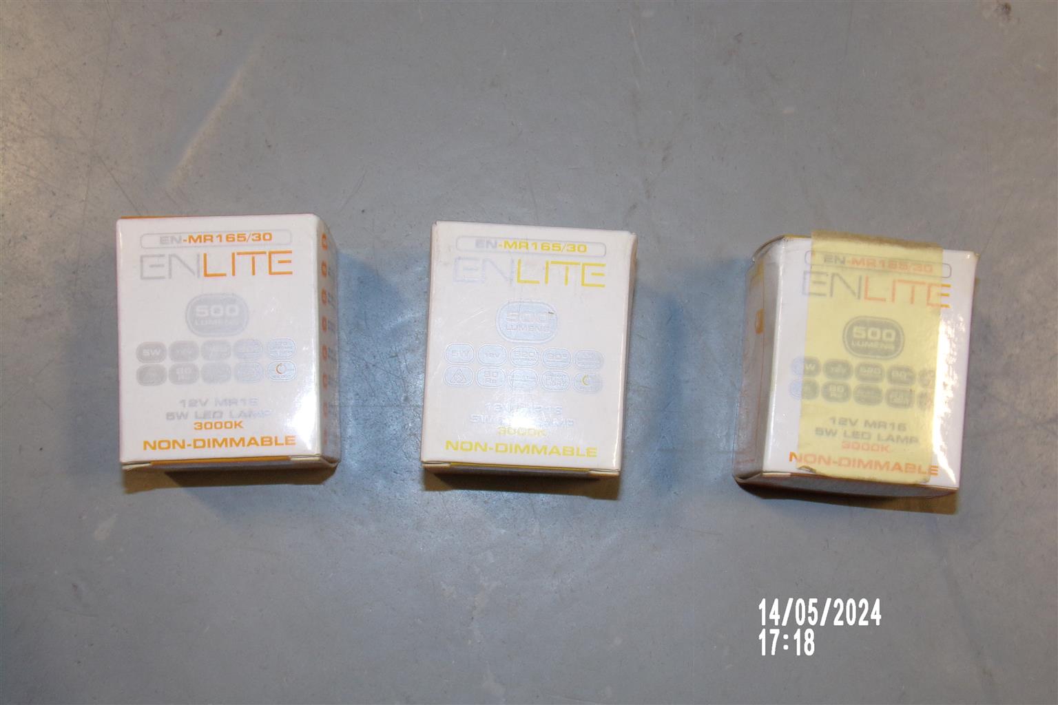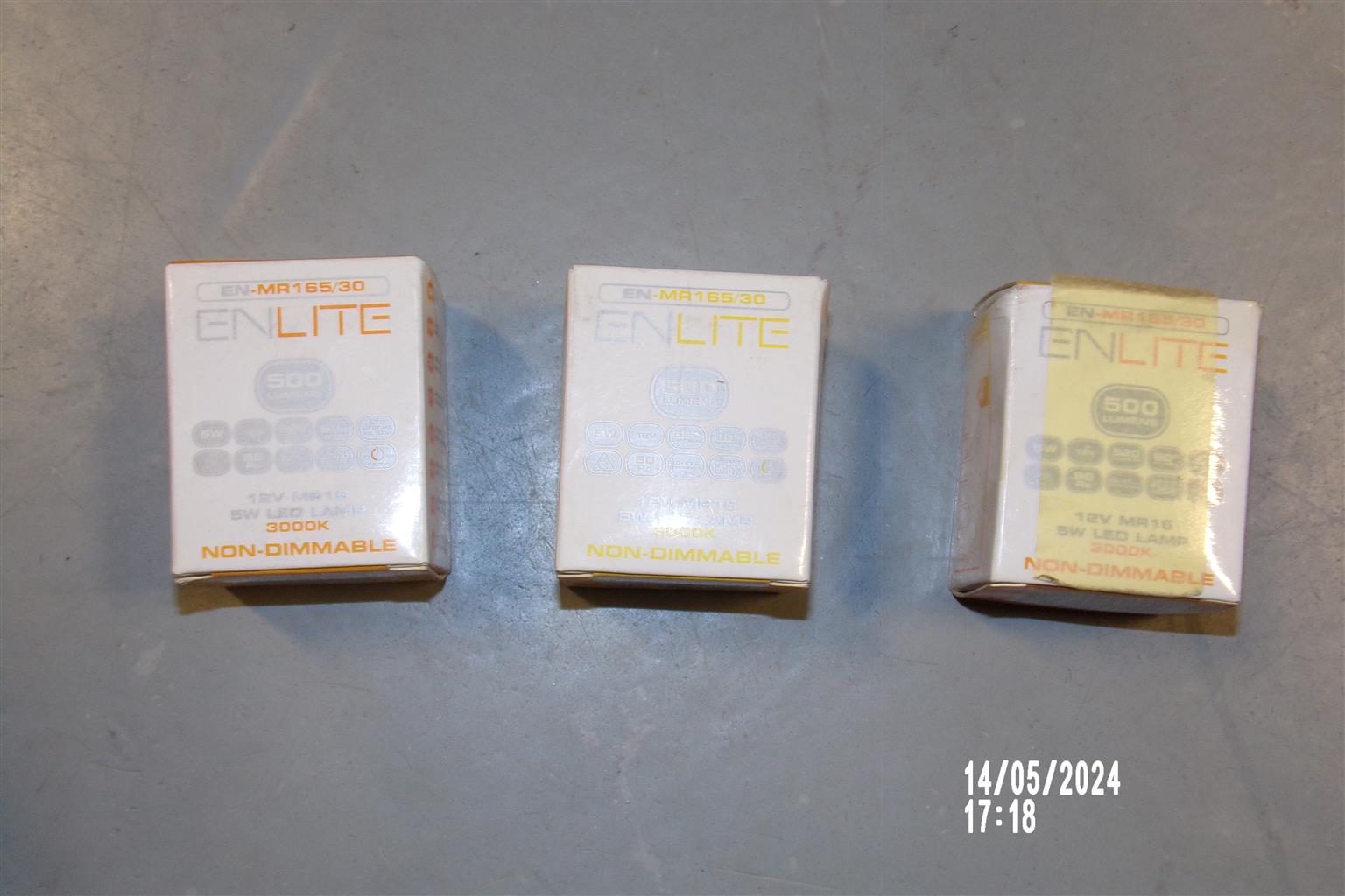 Selling a brand new ENLITE 12V MR16 5W LED lamp. This non-dimmable lamp emits a warm white light at 3000K, perfect for various lighting applications such as accent lighting, downlighting, and more. Please note, the lamp is new and unused, but the box is damaged. Enhance your space with energy-efficient, long-lasting LED lighting at a discounted price.