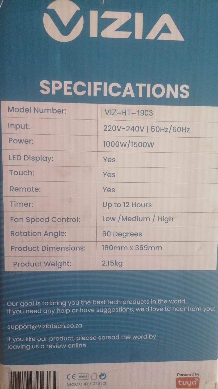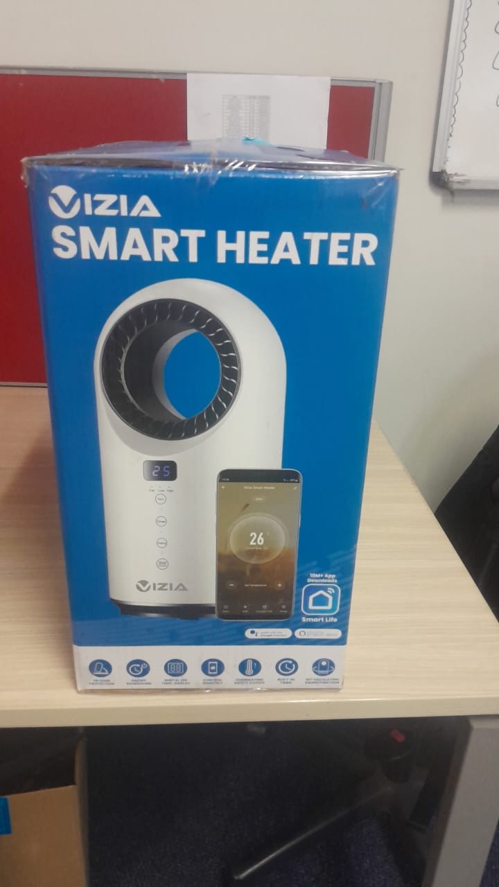 The VIZIA Smart WiFi Fan Heater is a small, safe and portable heater for indoor use that gets going quickly thanks to a next generation PTC ceramic heating element. The Smart Heater is the perfect home office companion with two heating modes and a digital temperature display so that you can keep the temperature just right.
