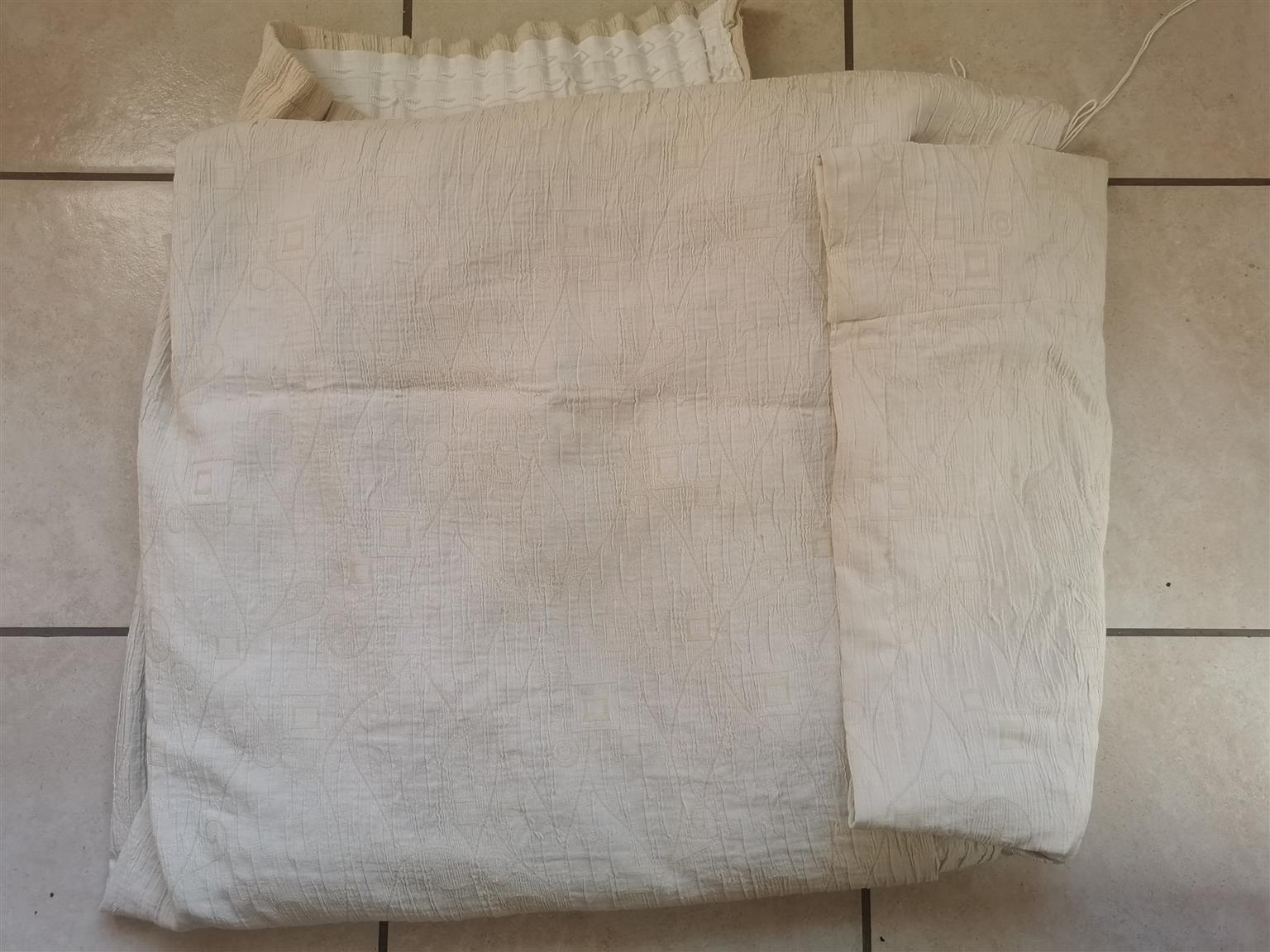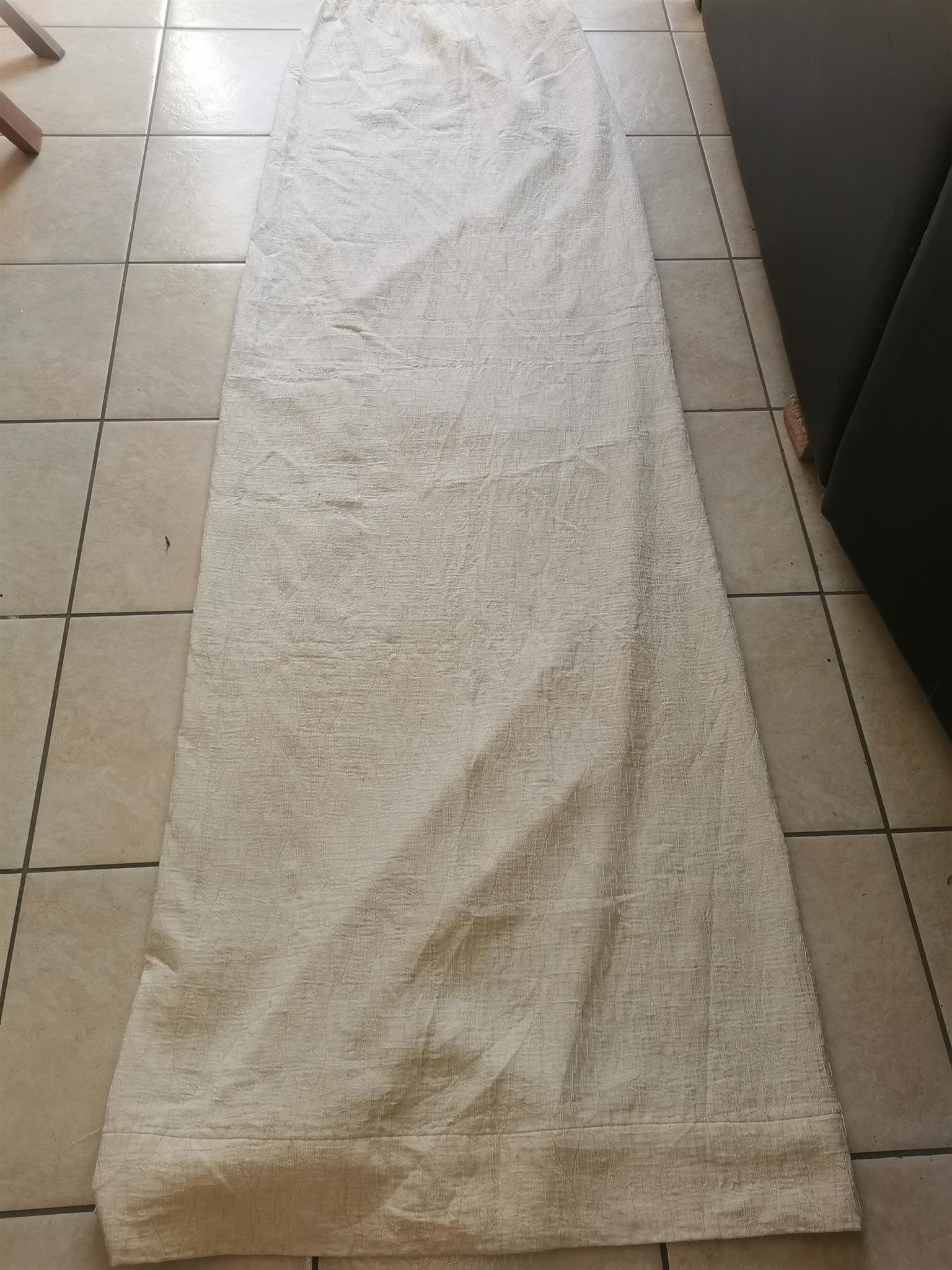 3 drapes each measuring 2450mm in width x 2350mm in height. All 3 drapes unlined. Selling all 3 as a set, not individually