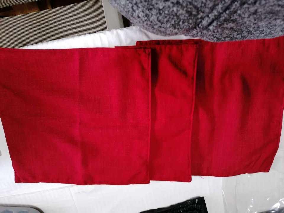 2 red square cushion covers. 2 black square and 1 rectangle cover. R80 for all. Collect from Wychwood in Germiston near Primrose Hill. Contact Margaret 084 693 6884view more