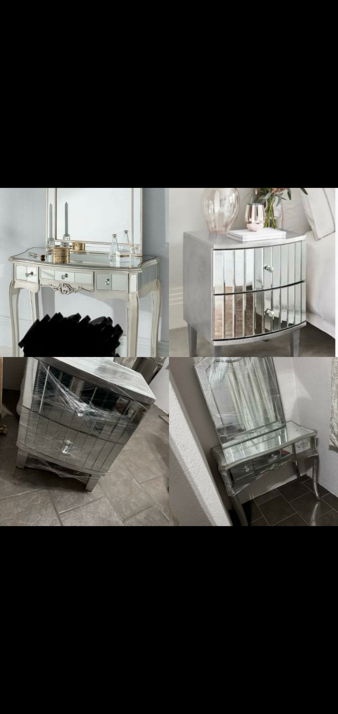 This smart mirror faced dressing table with a mirror and 2 side tables fulfills your bedroom dreams.