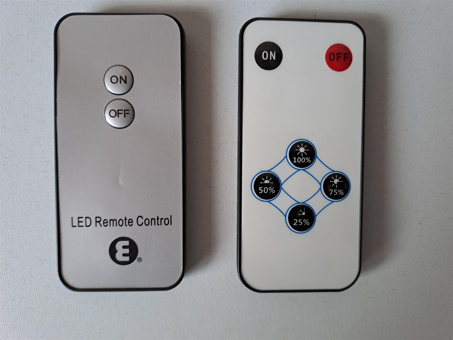 Remote Control for LED lights with built-in batteries. R50 each. I am in Orange Grove.