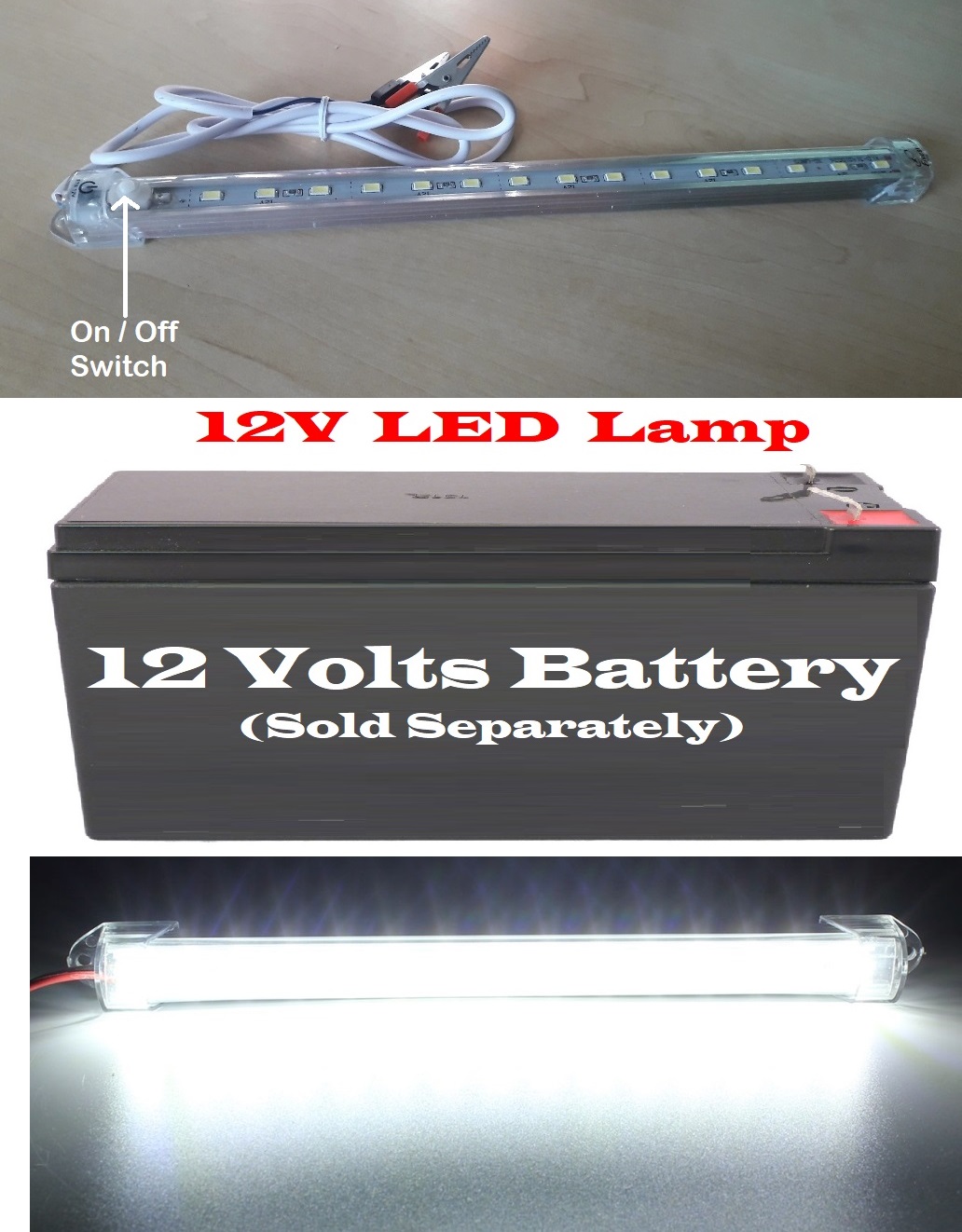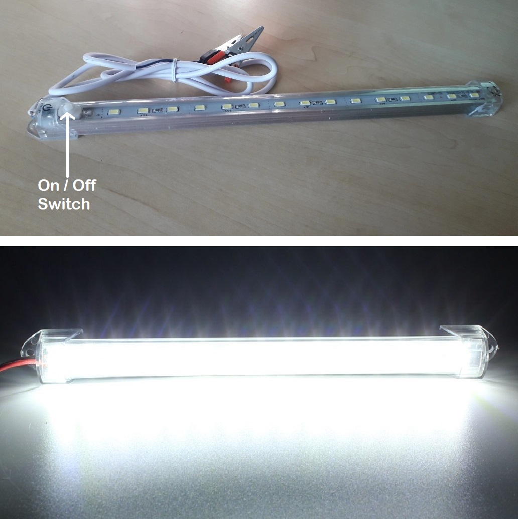 12Volts 30cm LED Tube Lights With On/Off Switch: Can Be Powered From A 12V Battery.