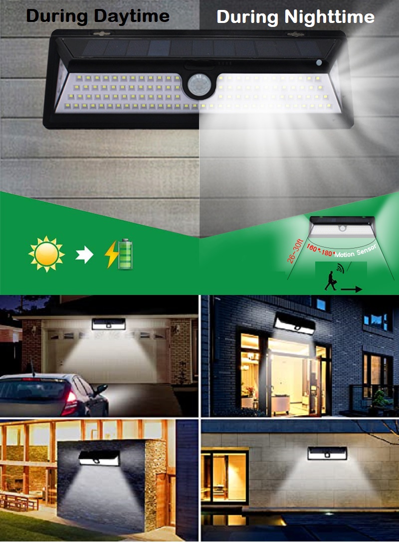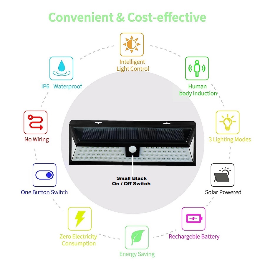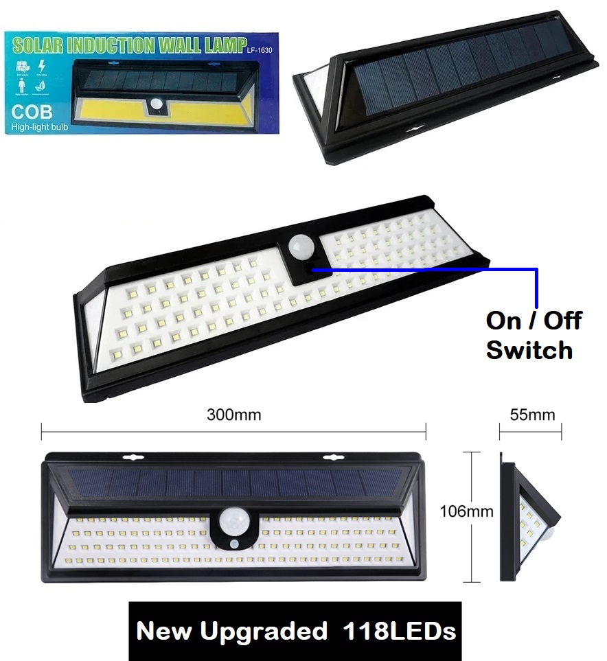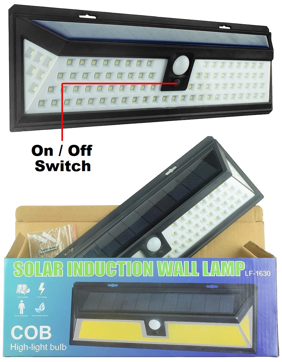 Solar Induction Wall LED Lamp With Motion Sensor and On / Off Switch.