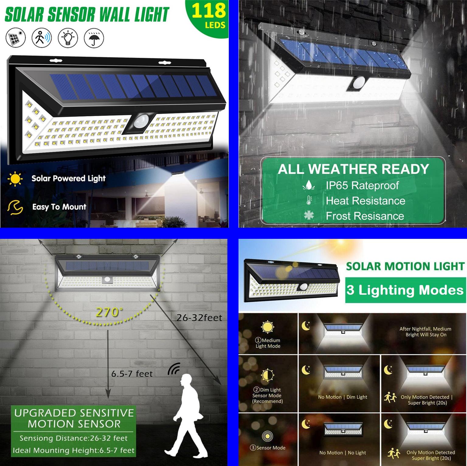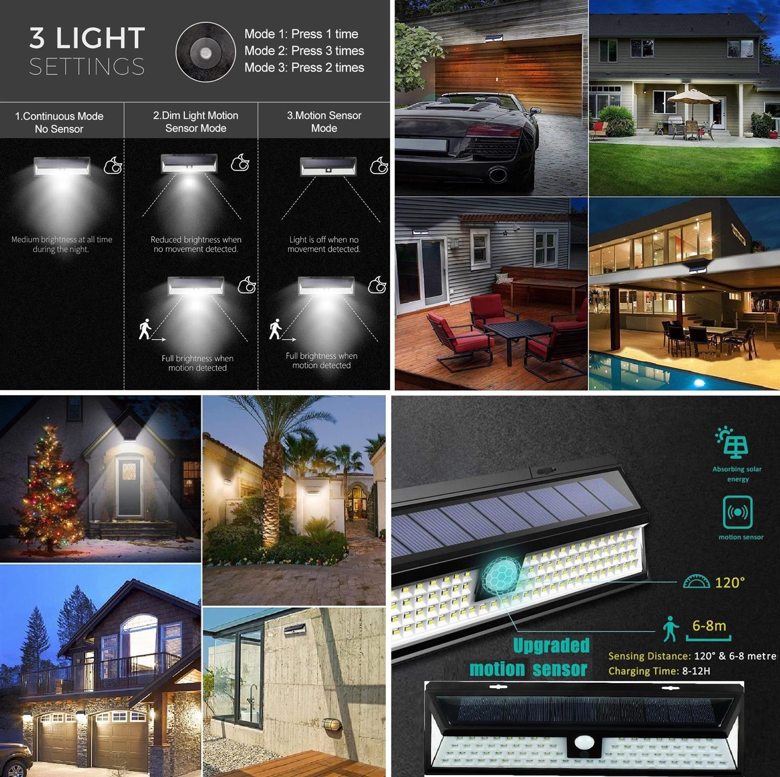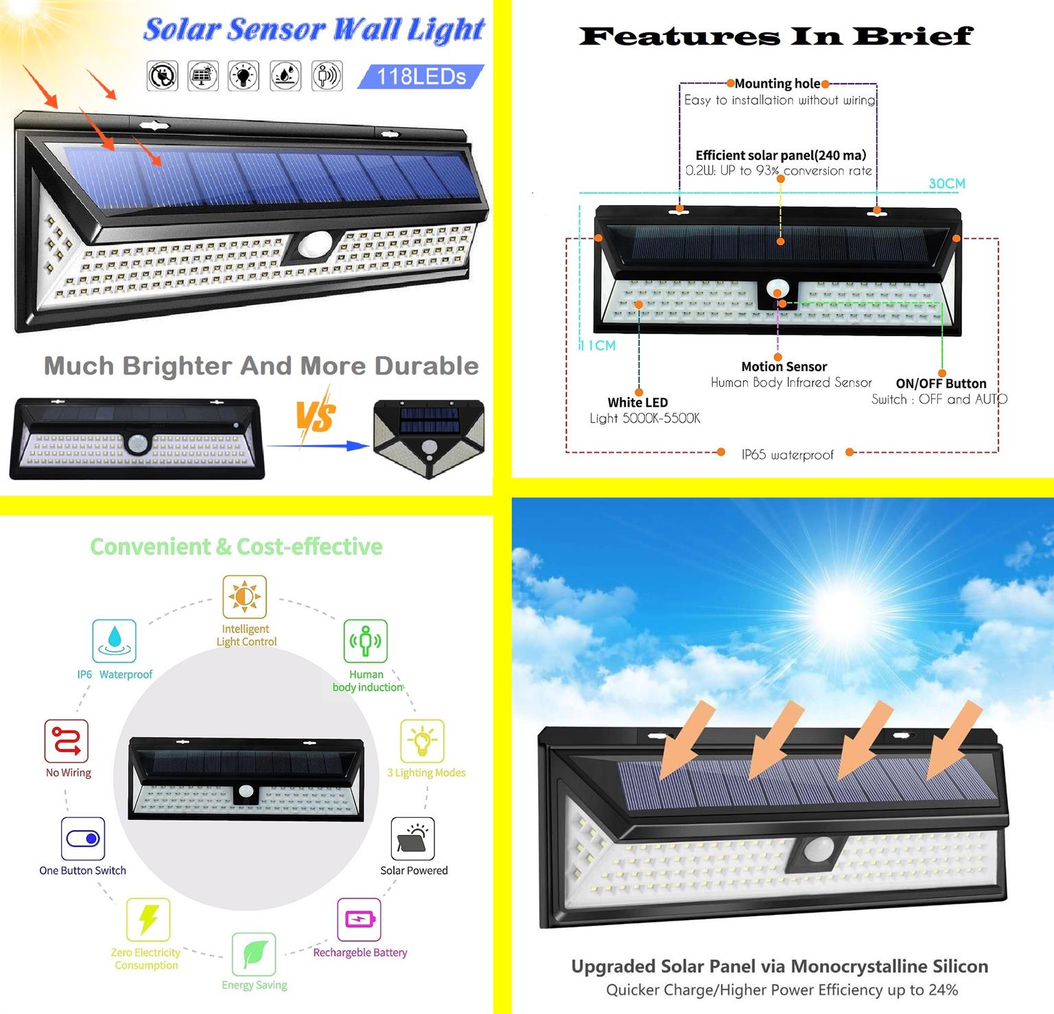 Solar Induction Wall LED Lamp With Motion Sensor and On / Off Switch.