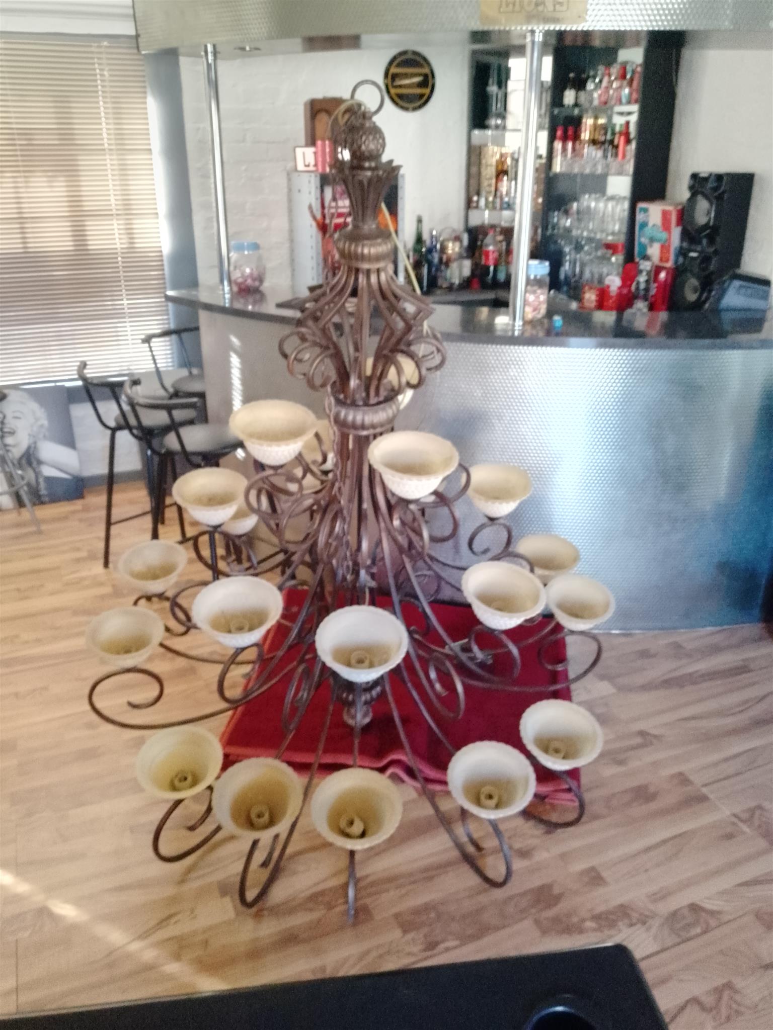 Chandelier, 21 lights, about 1.6m high. New price is around R25000.