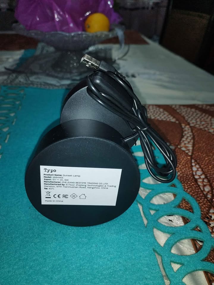 New Typo Sunset Lamp.Desk Lamp Coloured sunset style lighting USB operated 3m leading cable Main: 90% Plastic, 10% Metal.