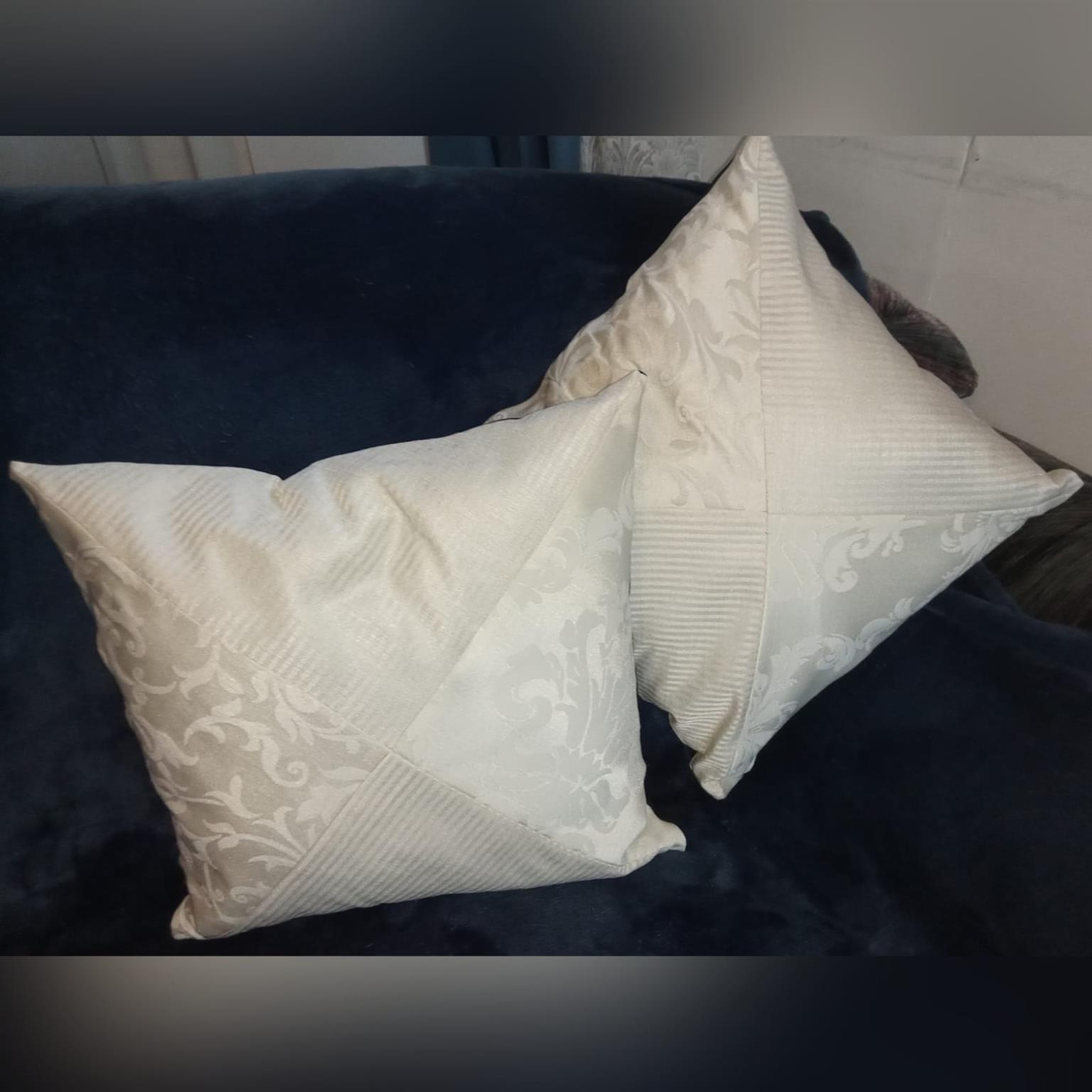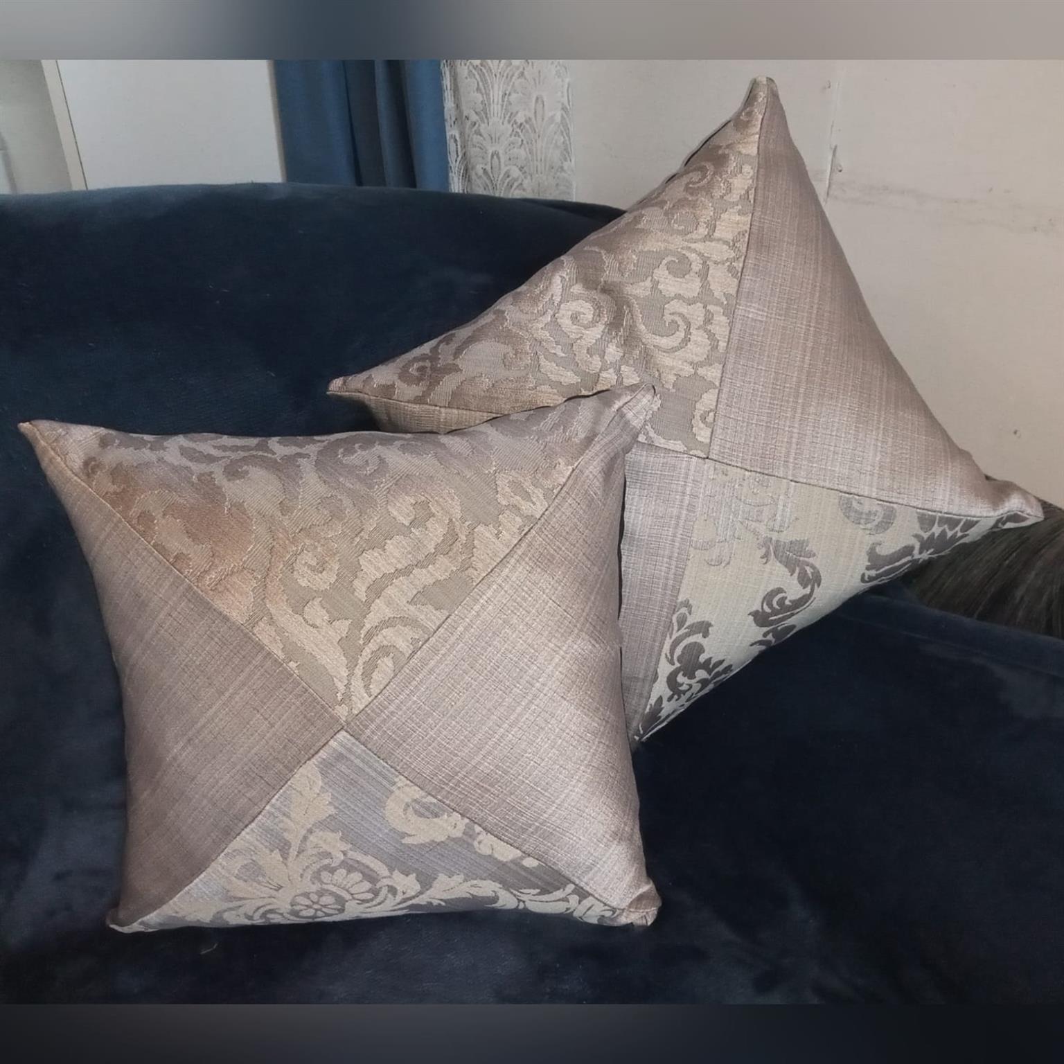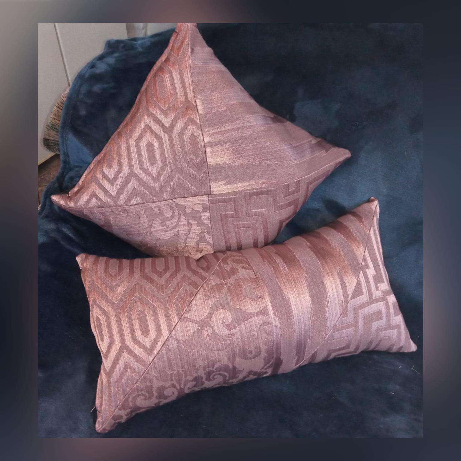 Beautiful Two-tone fabric scatter pillows with black backing. Removable inners. Concealed zip. Square pillows 40cm x 40cm. Rectangular pillows 30cm x 60cm. No mass production. Once-Off. Home Made.